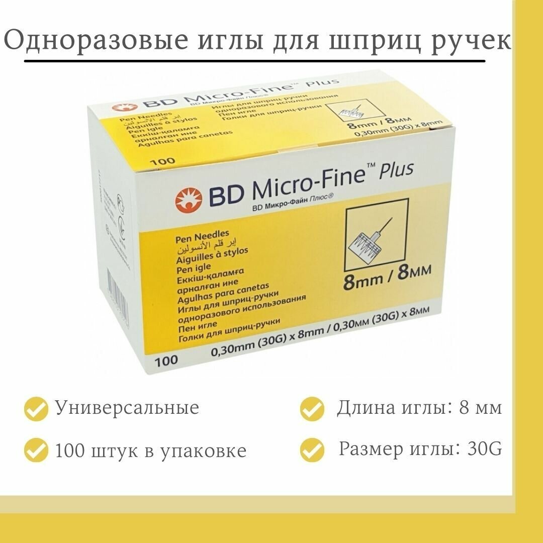 10 цен на Иглы для шприц-ручки БД МикроФайн Плюс (BD Micro-Fine Plus) 30G (0.30 mm) 8 мм, 100 шт