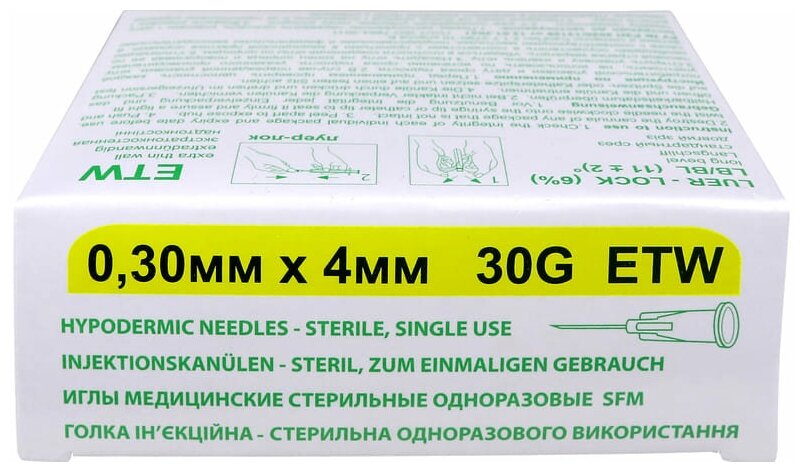 Иглы для микроинъекций 30G (0,30 х 4 мм) SFM, комплект - 10 штук информация: