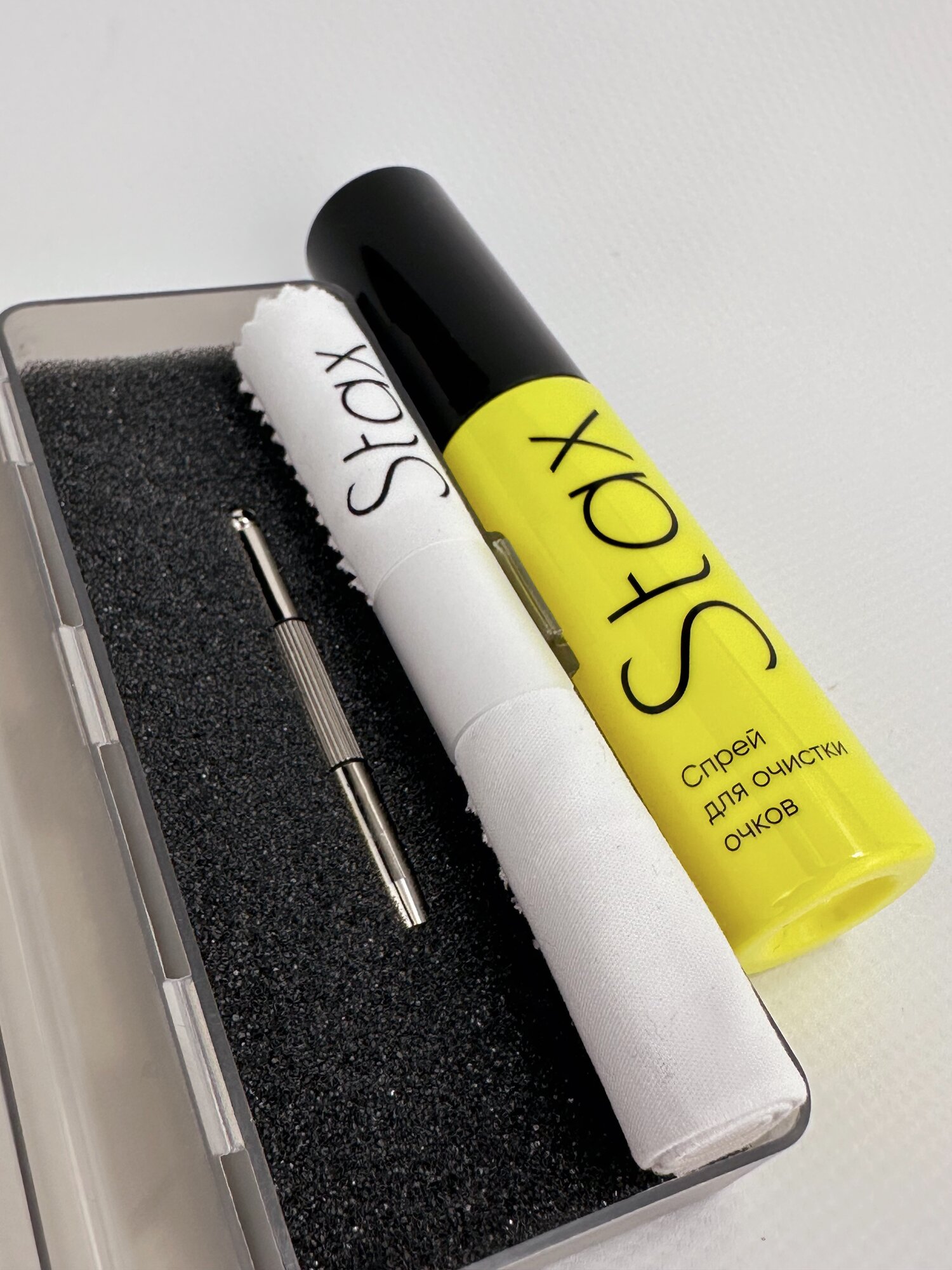 Отзывы на Спрей с салфеткой и отверткой для очков Stax в пластиковом футляре, 30мл, 19х23см