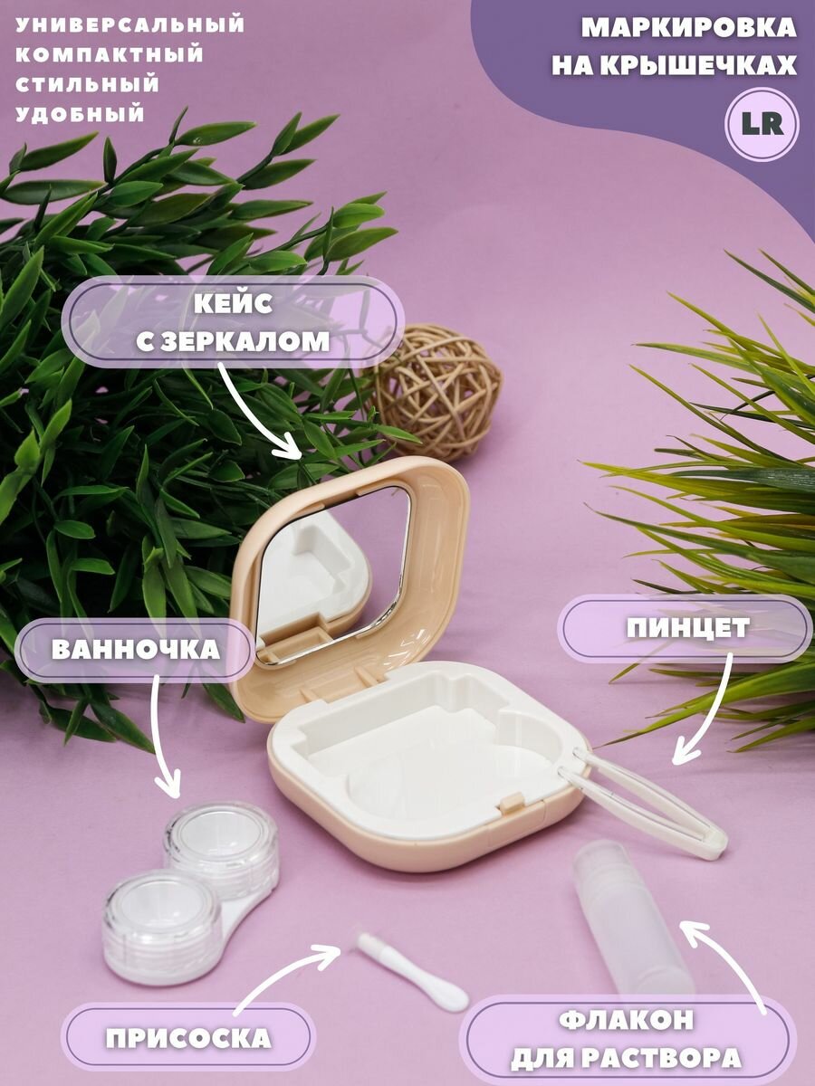 10 цен на Контейнер для линз контактных, дорожный набор Smooth beige