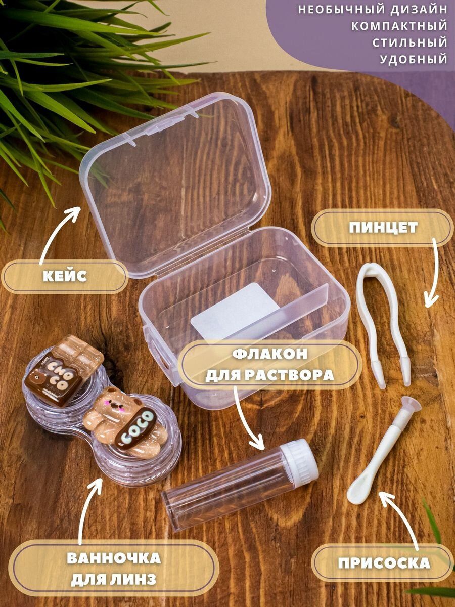 10 цен на Контейнер для линз контактных, дорожный набор Sweet bear chocolate