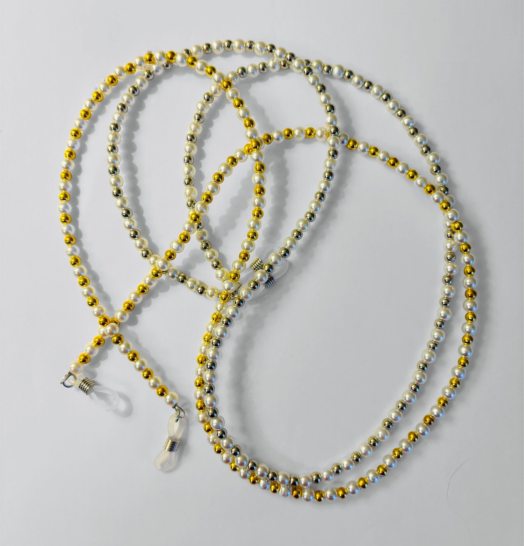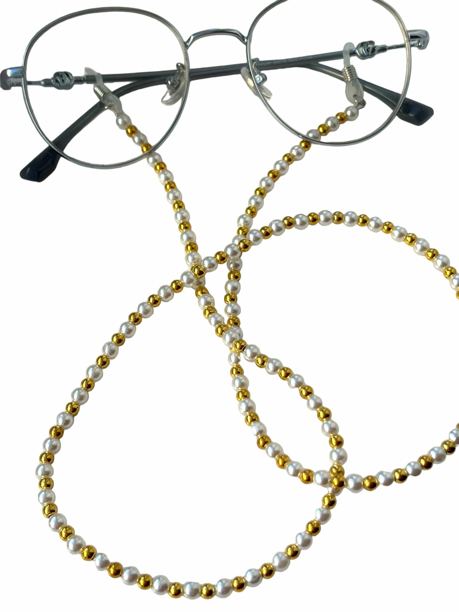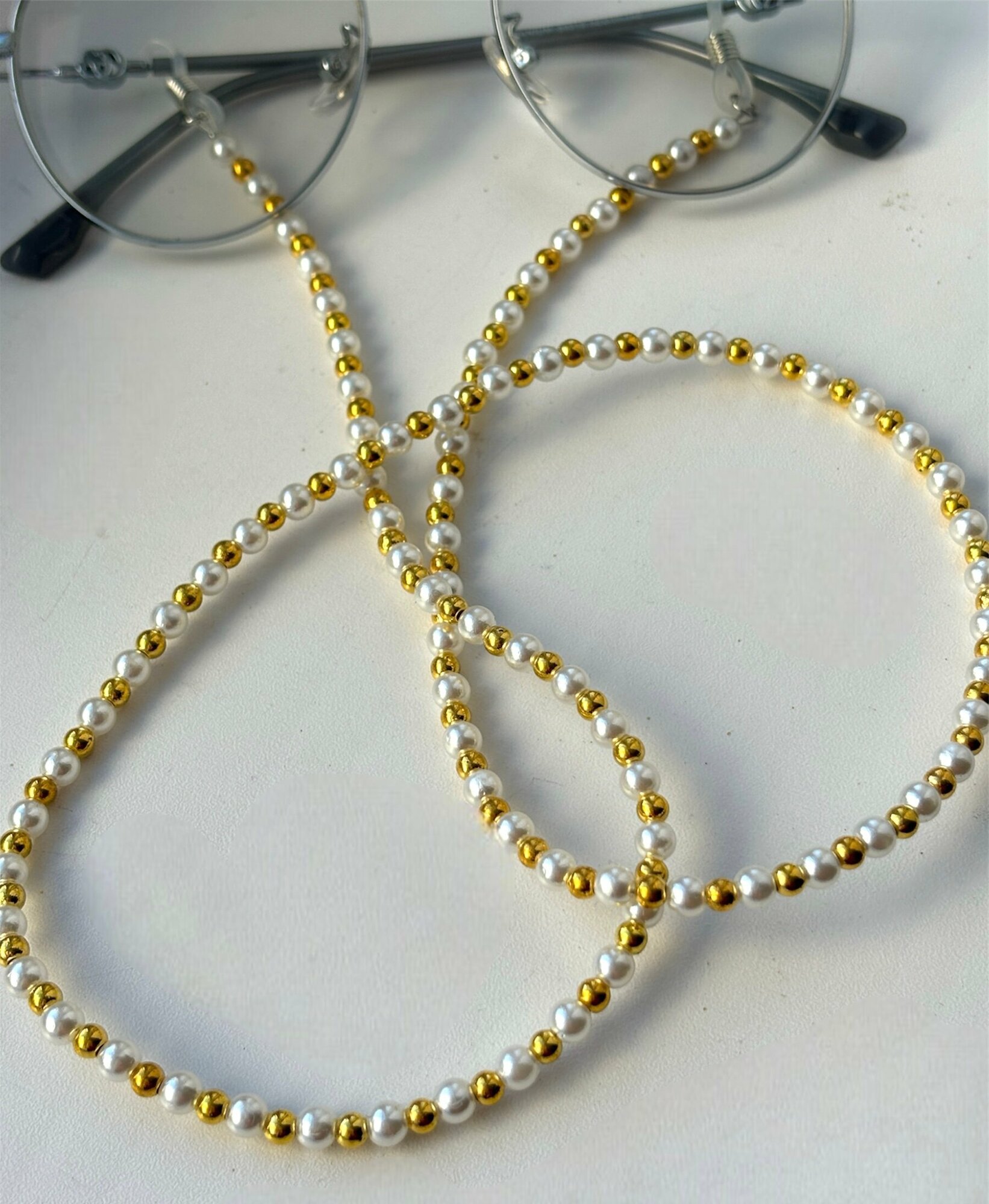 Цепочка для очков белые и золотые бусины информация: