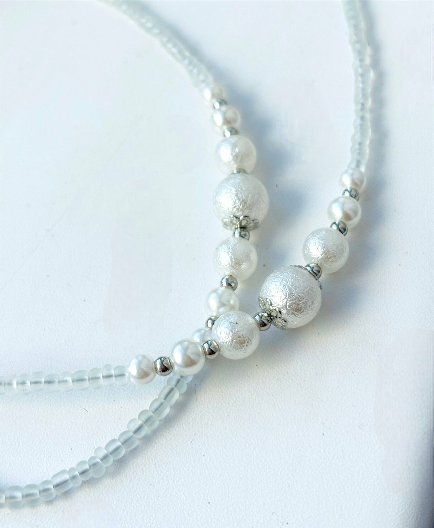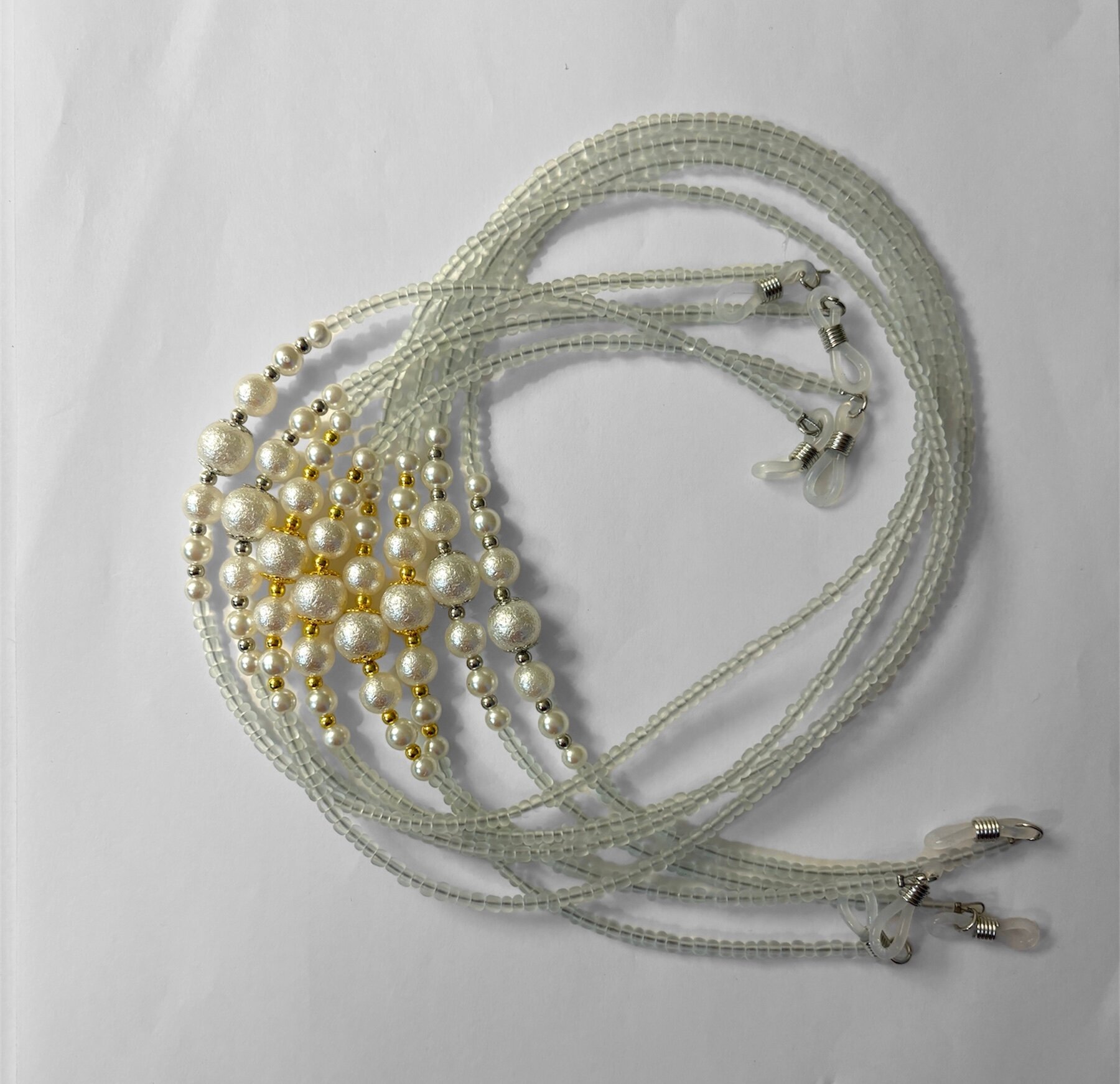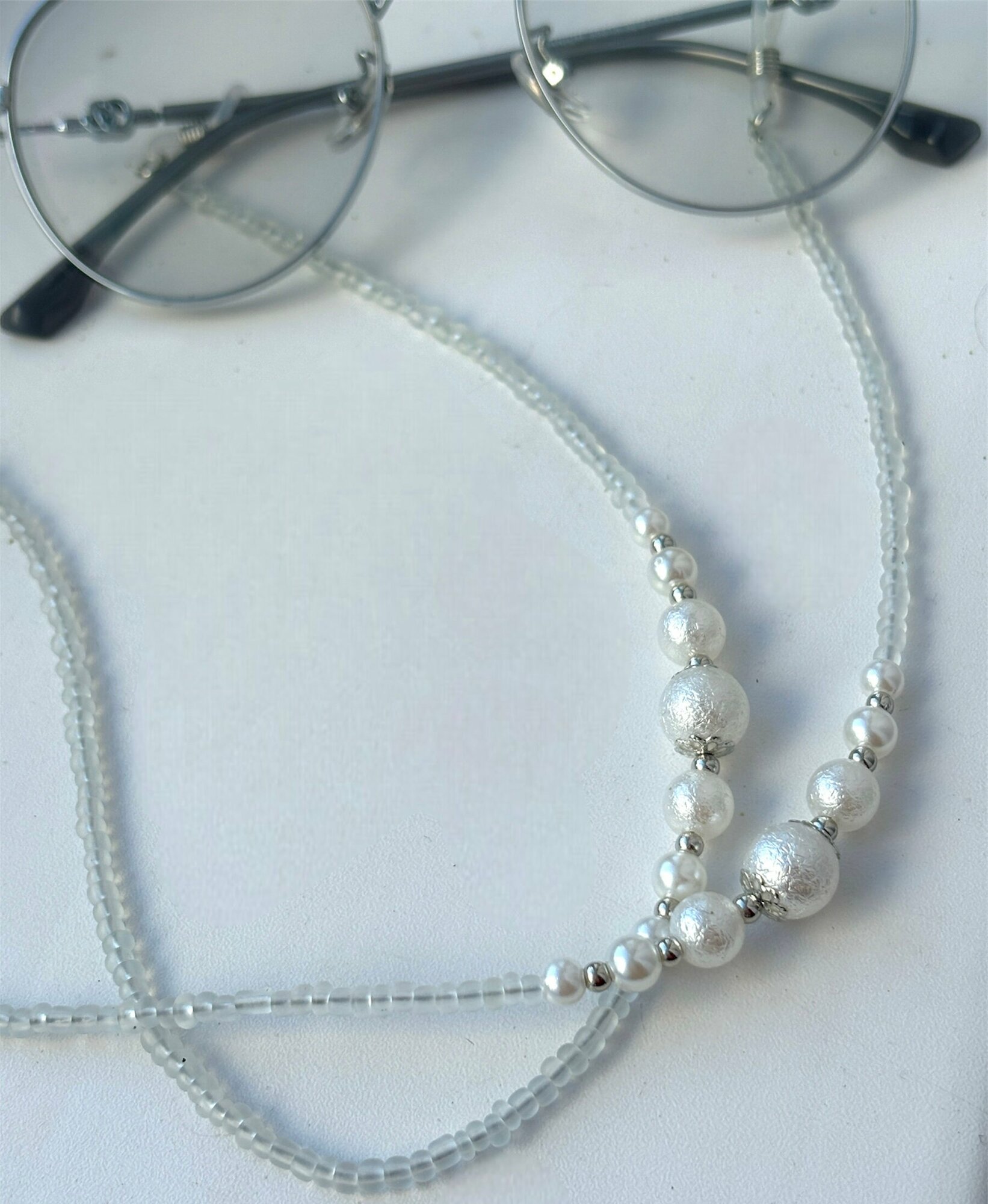 Цепочка для очков с бисером бело-серебристая информация: