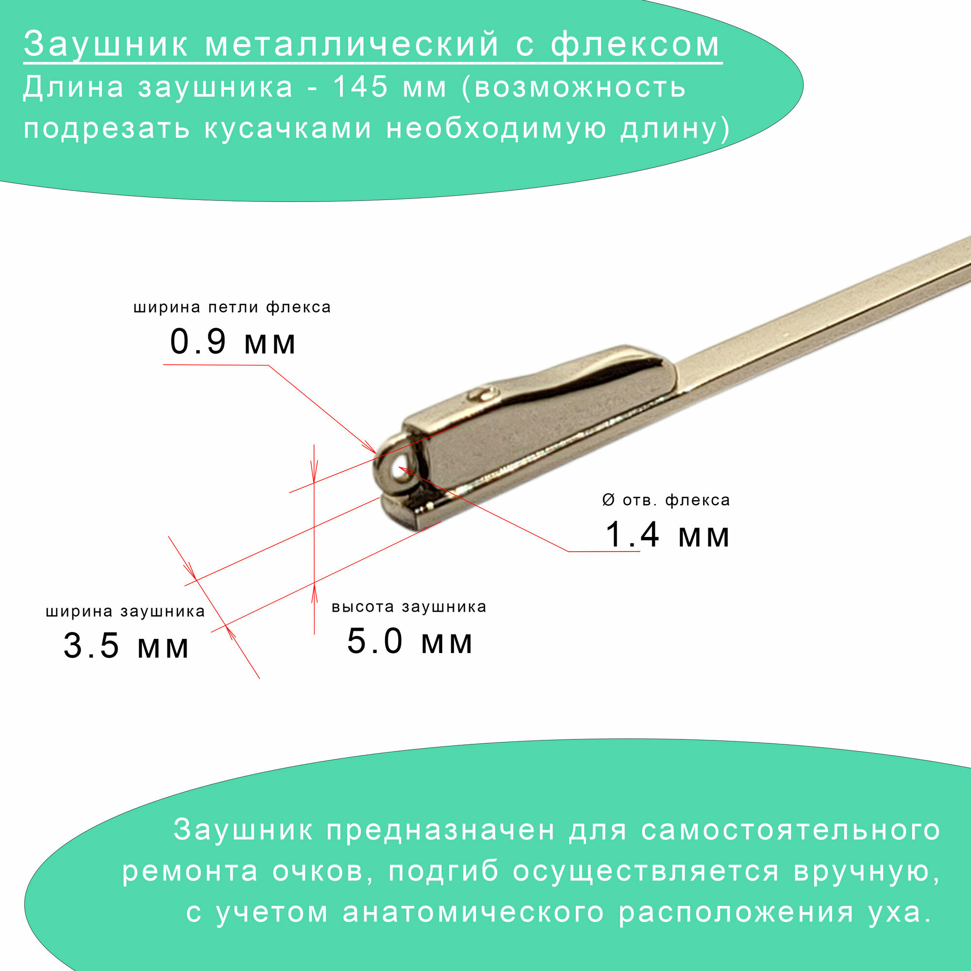 Заушник металлический с флексом для очков 3.5х0.9х145 мм, светло-золотистый (1 пара) OPTICTECH информация: