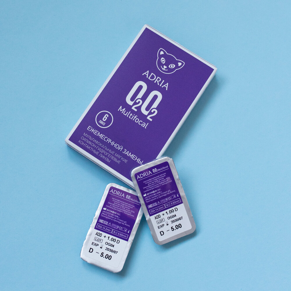 Мультифокальные линзы Adria O2O2 Multifocal, ежемесячные, -5,00, AD +1,00, 14,2 / 8,6 / 6 шт. 2 825 ₽