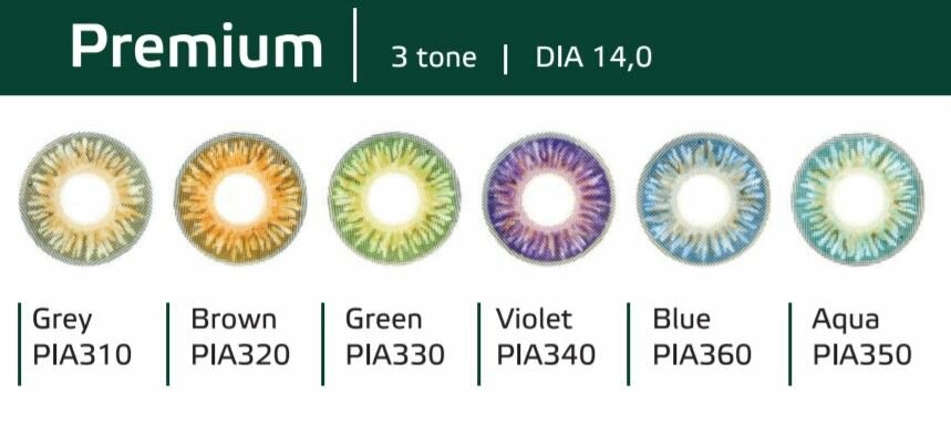 Контактные линзы цветные оттеночные., HERA., Premium Aqua (трехтоновая)., Квартальные (3 месяца).,2 шт., D -0.0
