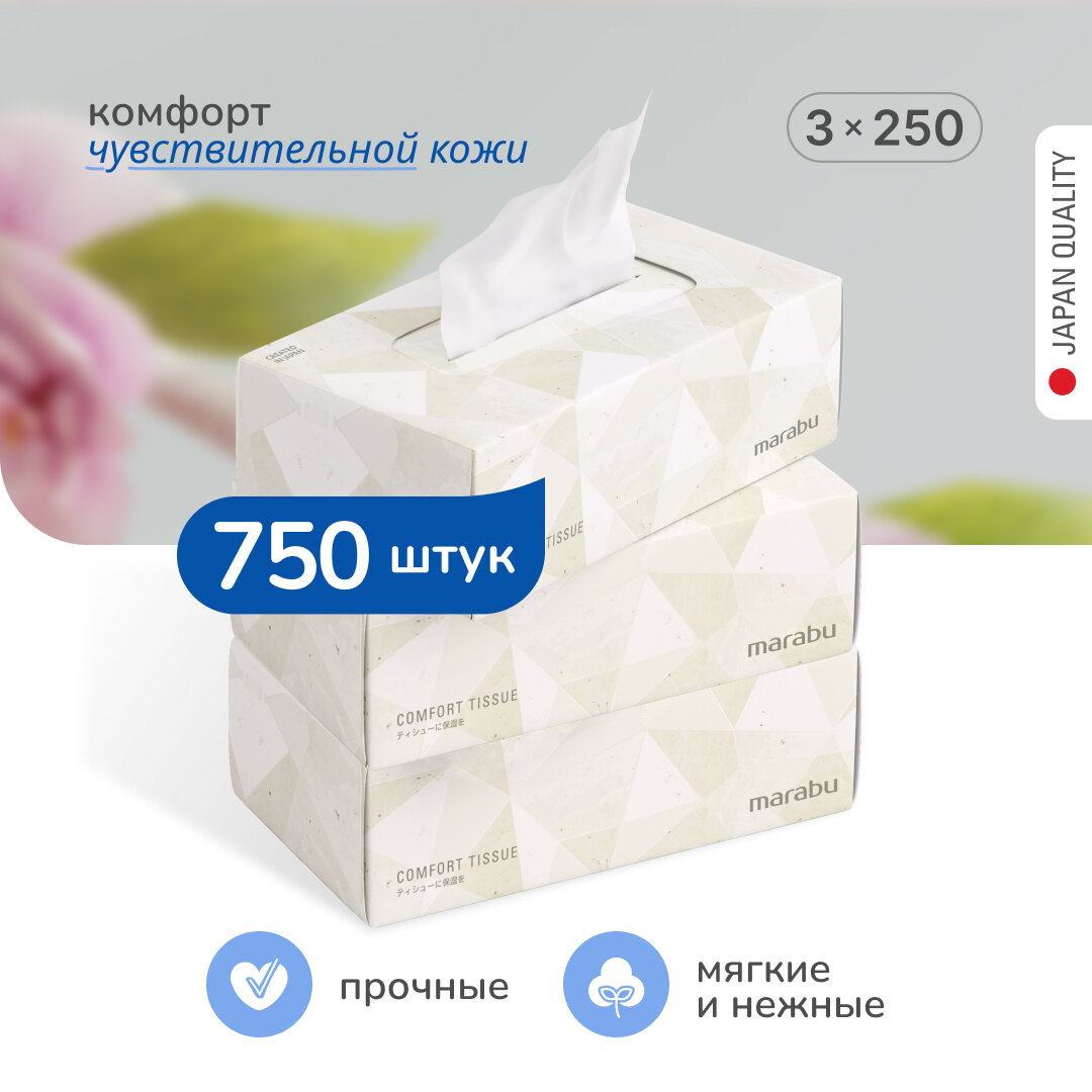 10 цен на Салфетки бумажные MARABU Lotion Tissue, 250 шт. х 3 уп.