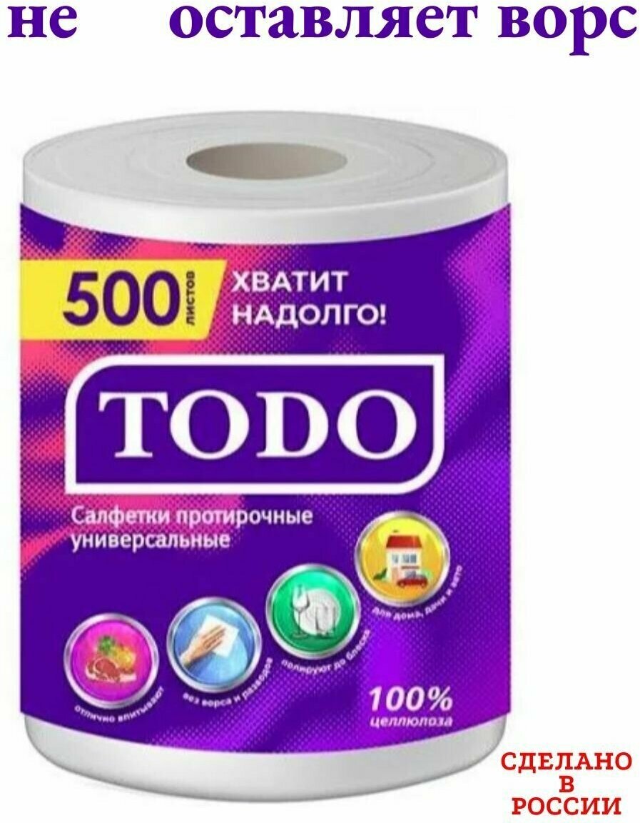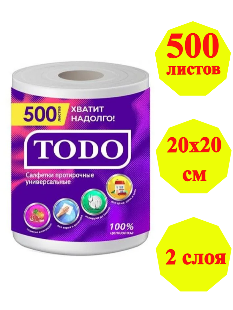 10 цен на TODO Бумажные протирочные салфетки полотенца для уборки и сервировки универсальные 2-слойные 20х20см 500 листов, 100м