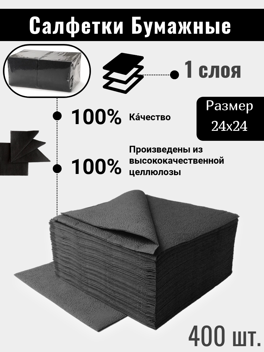 Салфетки сервировочные бумажные, однослойные, 24*24, 400 шт черный информация: