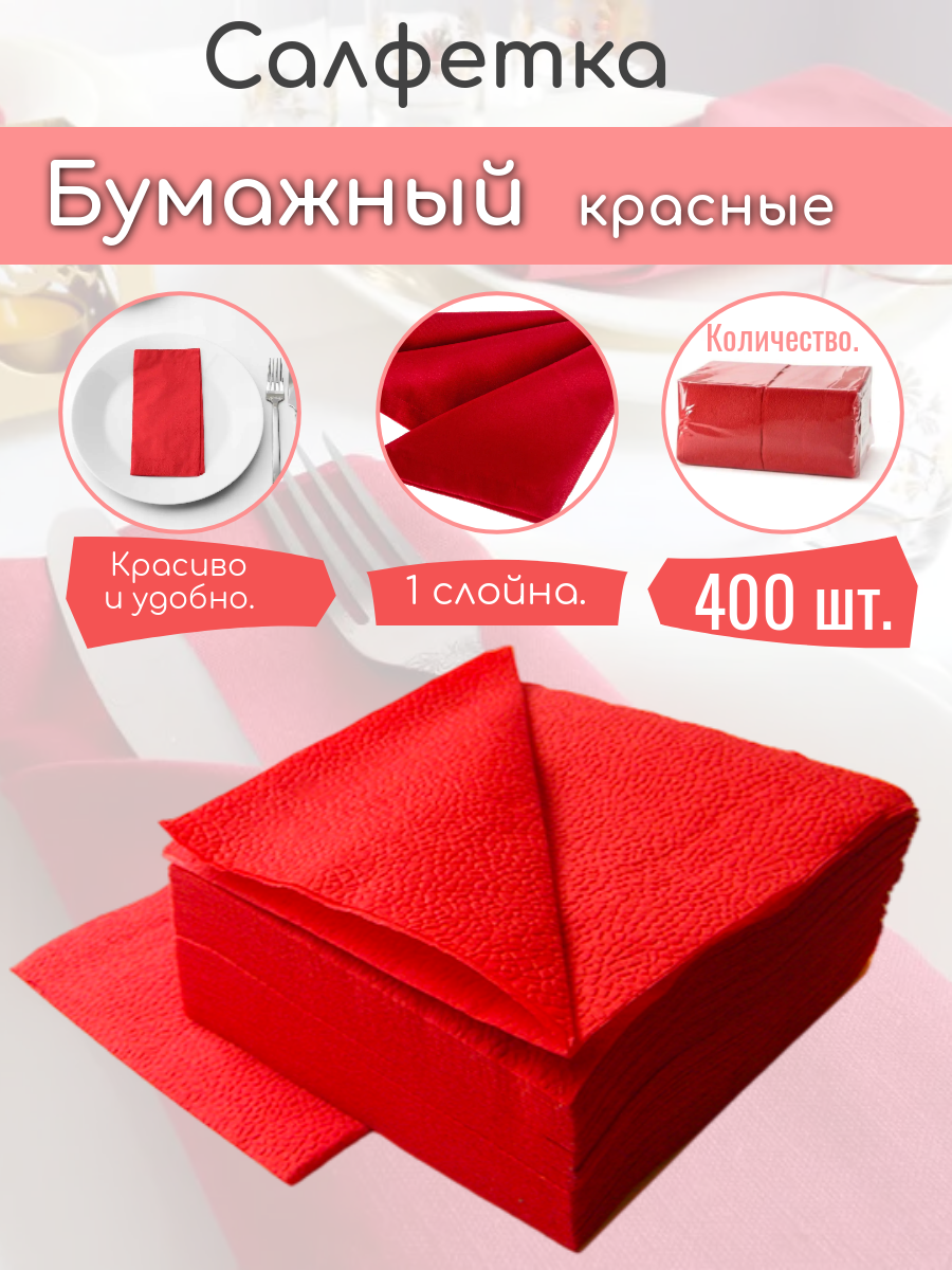 10 цен на Салфетки сервировочные бумажные, однослойные, 24*24, 400 шт красный