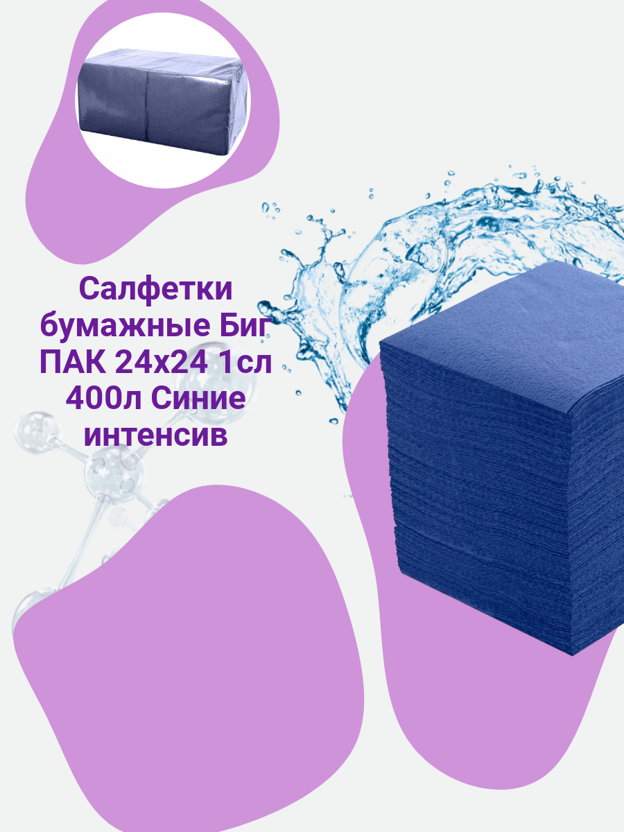 Отзывы на Салфетки сервировочные бумажные, однослойные, 24*24, 400 шт синий