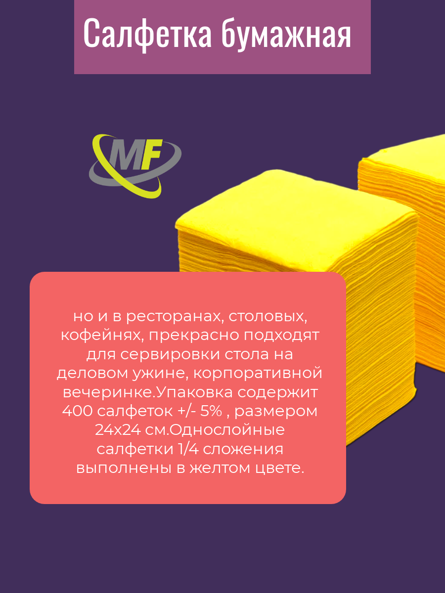 Салфетки сервировочные бумажные, однослойные, 24*24, 400 шт желтый информация: