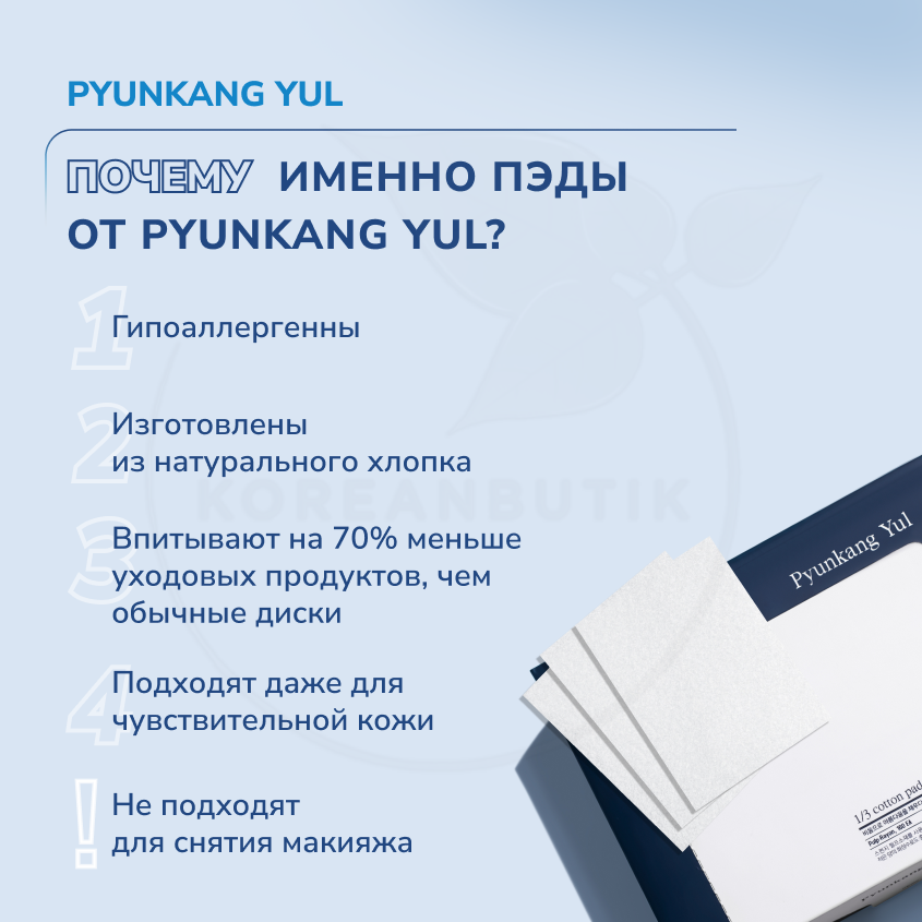 Хлопковые ватные диски - пэды для лица | Pyunkang Yul 1/3 Cotton pad 160 шт. информация: