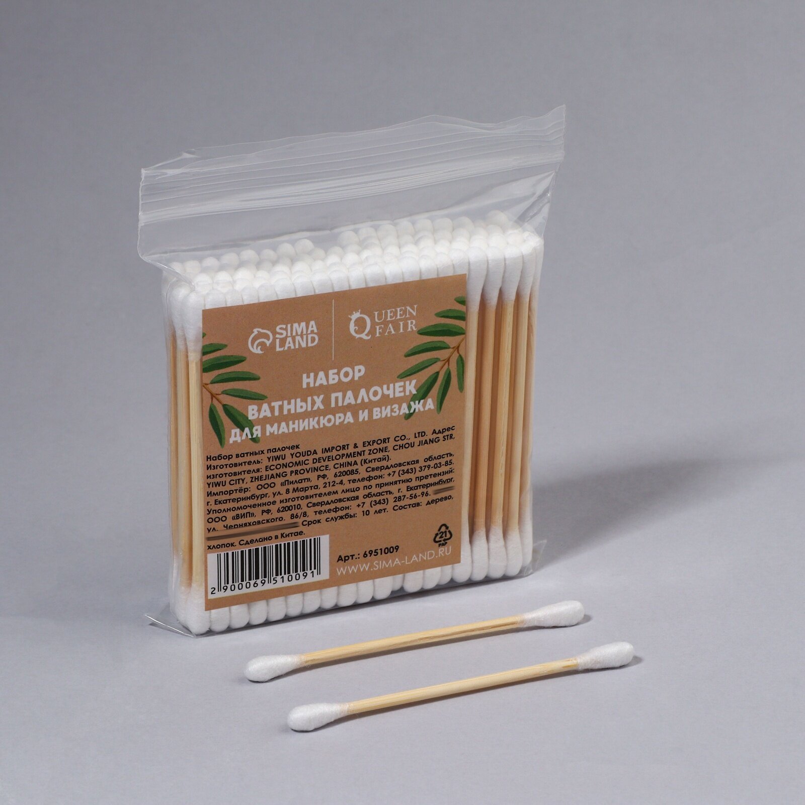 10 цен на Ватные палочки Queen Fair на деревянной основе 7см в пакете, 100 шт