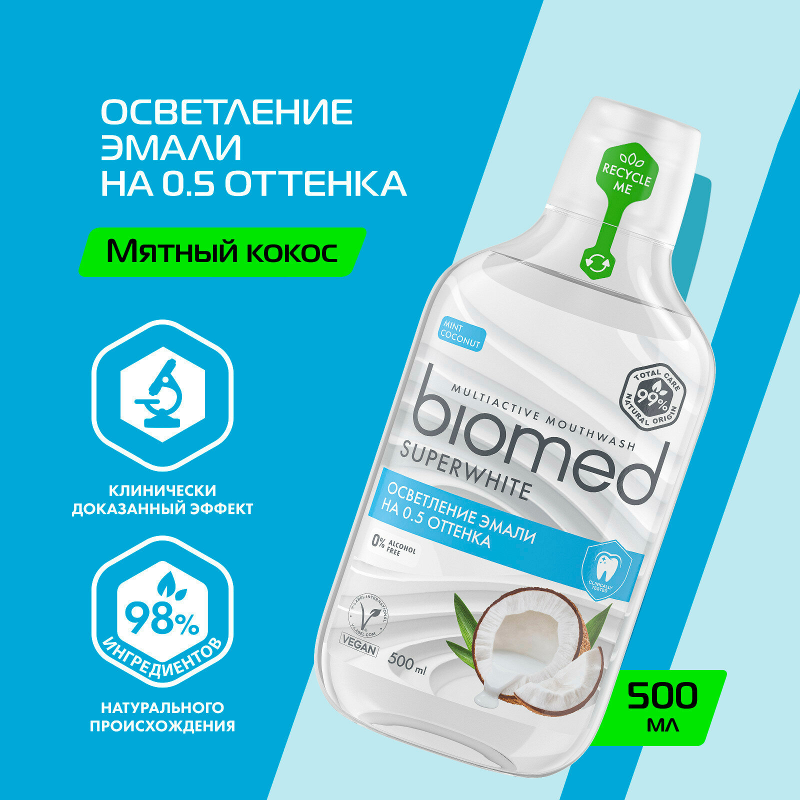 Ополаскиватель для полости рта Biomed Superwhite, кокос, усиливает отбеливающие свойства зубной пасты, 500 мл информация: