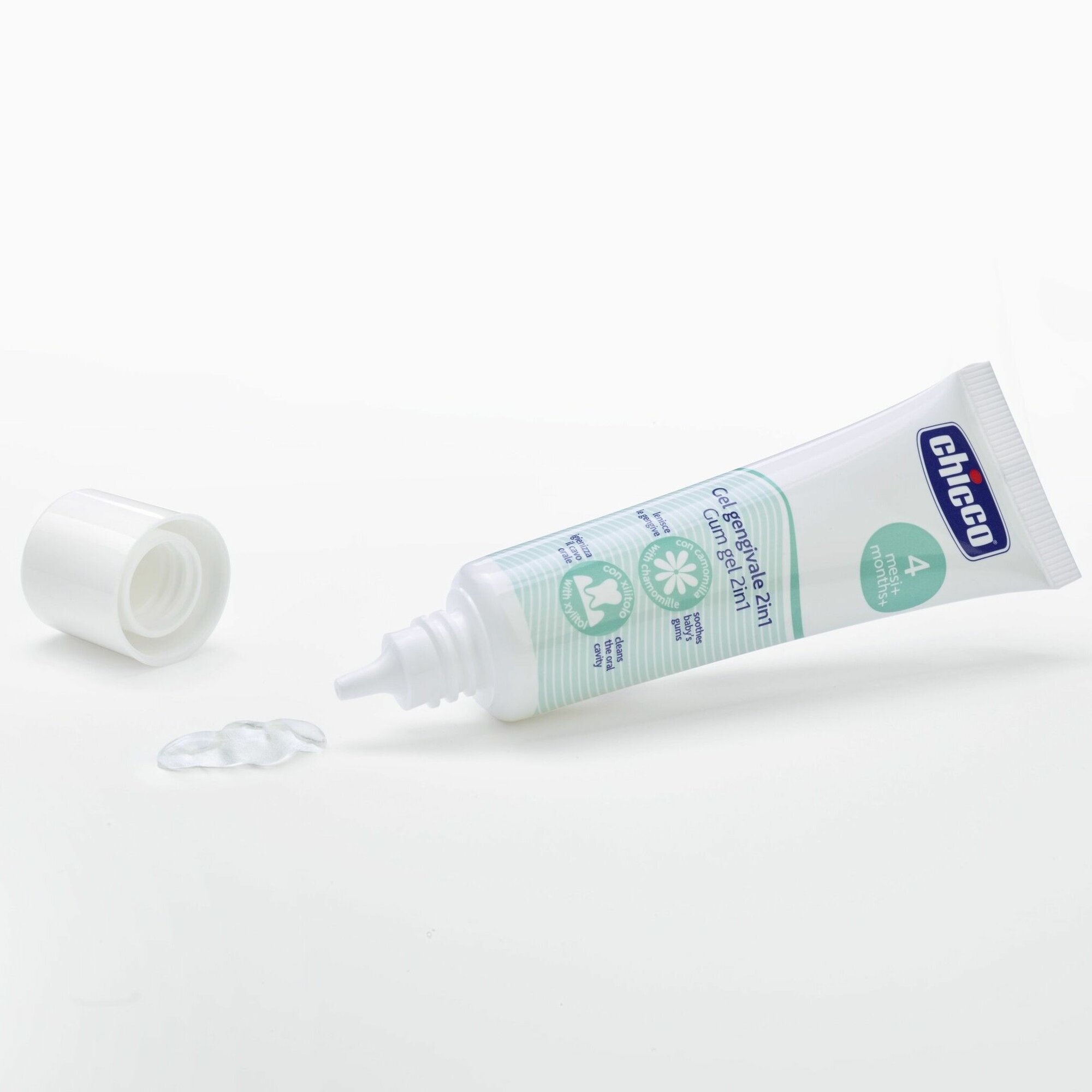 Гель для десен при прорезывании зубов 2 в 1 с ксилитом и экстрактом ромашки, 30 мл, Chicco, 4м+ информация: