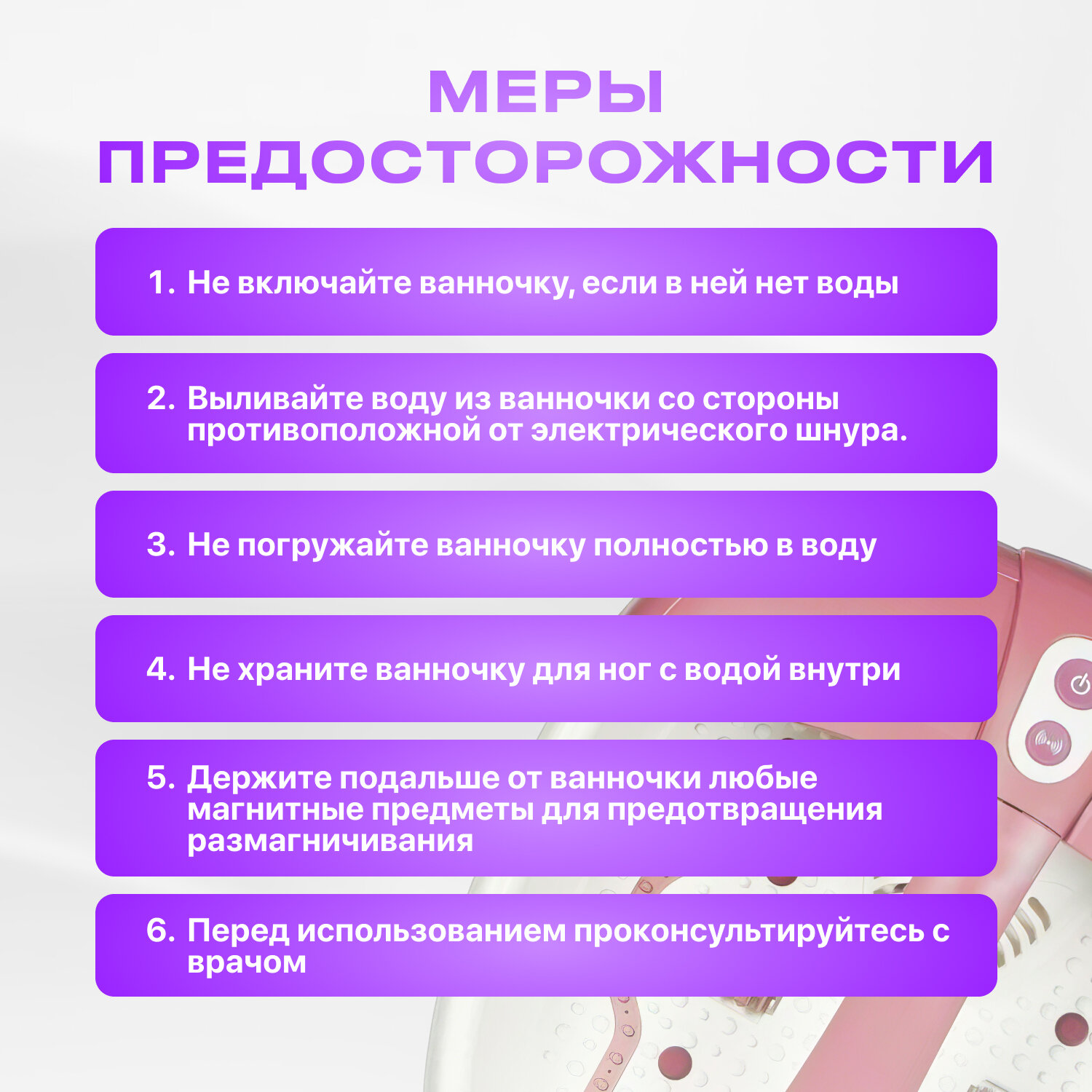 | Функции | ароматерапия / инфракрасный излучатель / использование без воды / магнитное воздействие / подогрев воды |