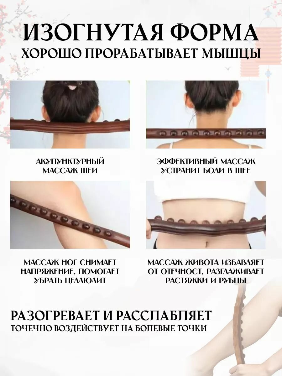 Отзывы на Массажная палка Гуаша 10 шарик дерево бук лимфодренажная для похудения тела живота спины шеи