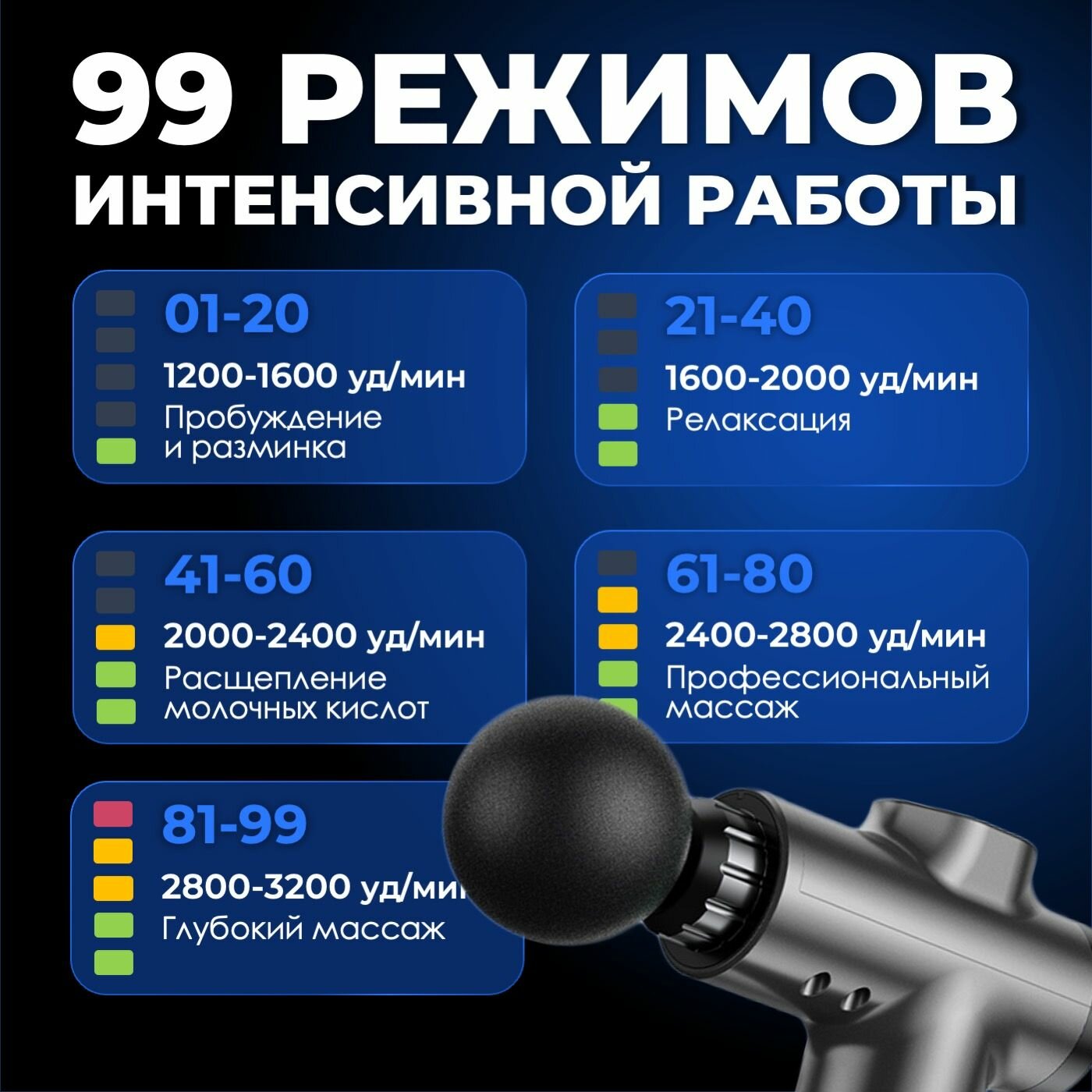 | Вид массажа | акупунктурный / вибрационный / комбинированный / перкуссионный / расслабляющий |