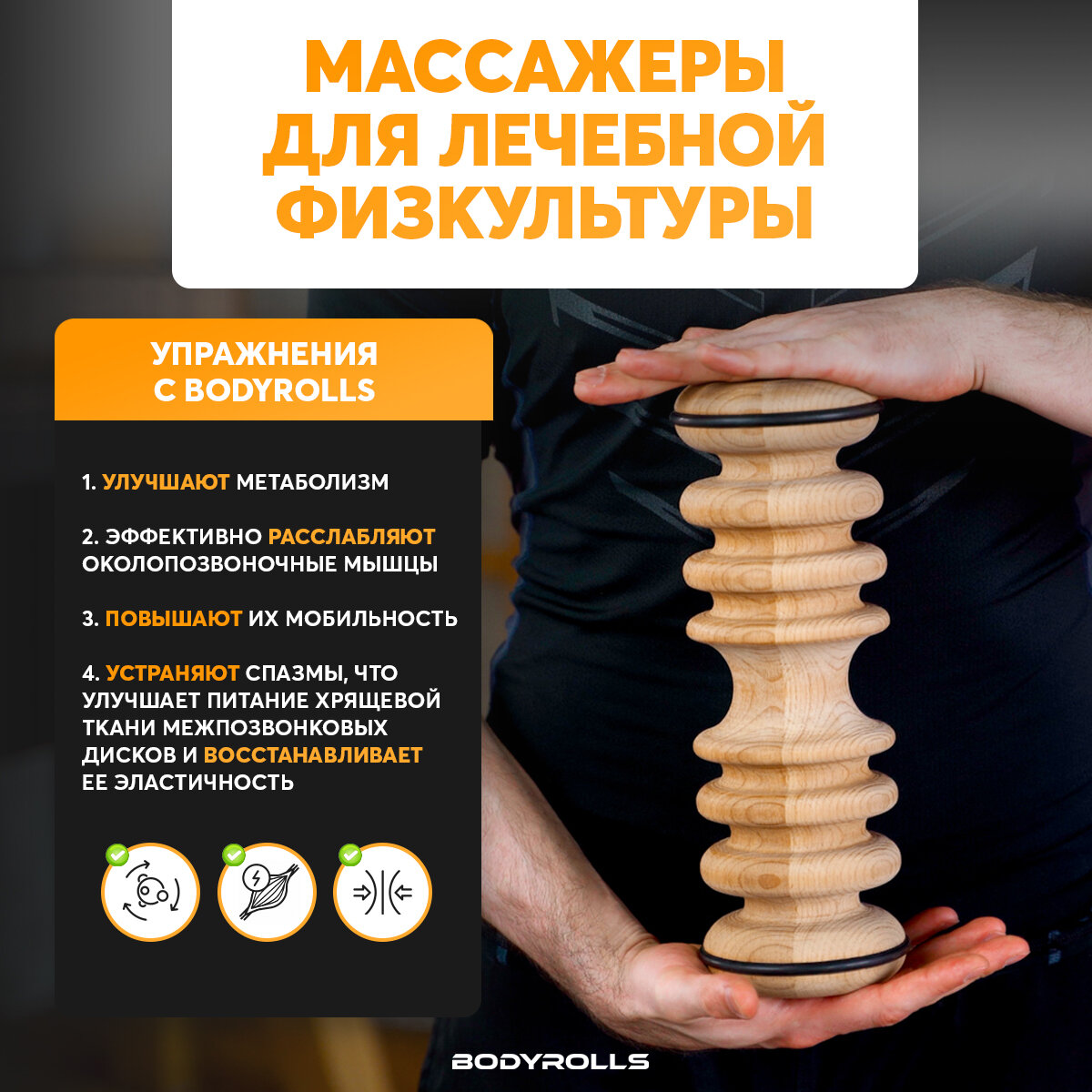 Массажный ролик BODYROLLS серии HARD, модель SLIDE для коррекции позвоночника и МФР деревянный 3 664 ₽
