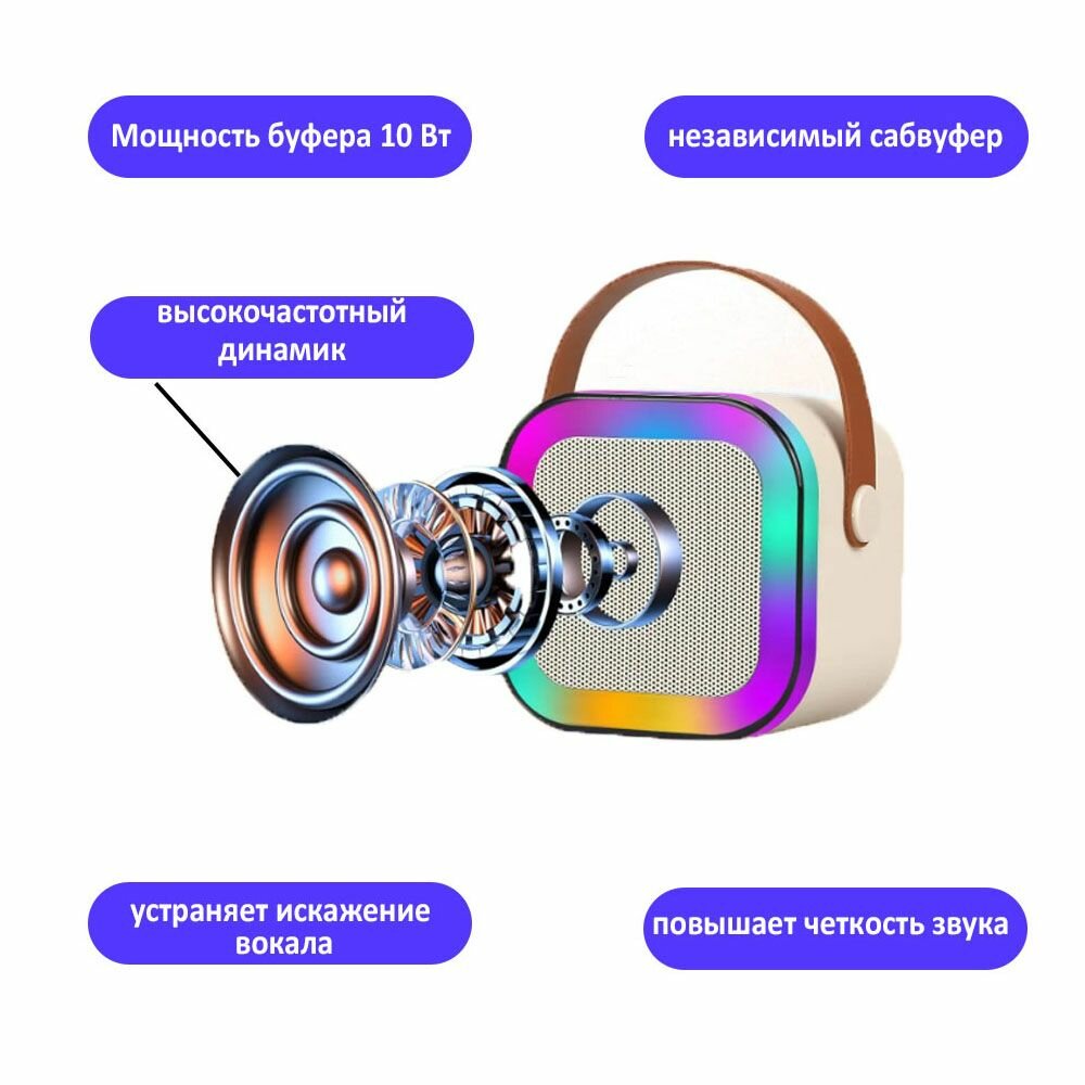 Портативная Bluetooth колонка с 2 микрофонами К12 / Беспроводной динамик для караоке со светодиодной подсветкой информация: