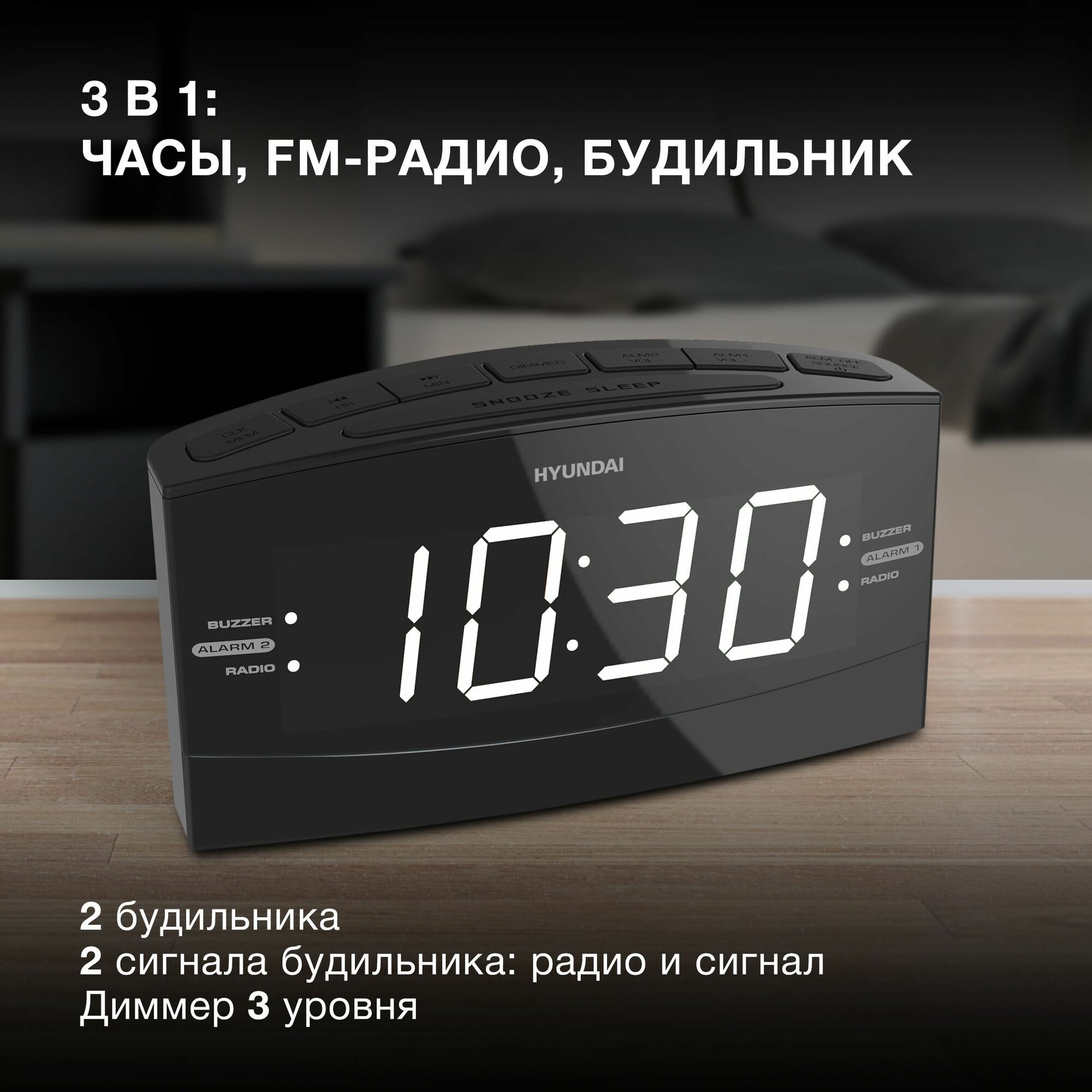 Отзывы на Часы электронные настольные Hyundai H-RCL238, LCD подсветка белая, радиобудильник, часы с будильником, радио, от сети 220В, с большими цифрами