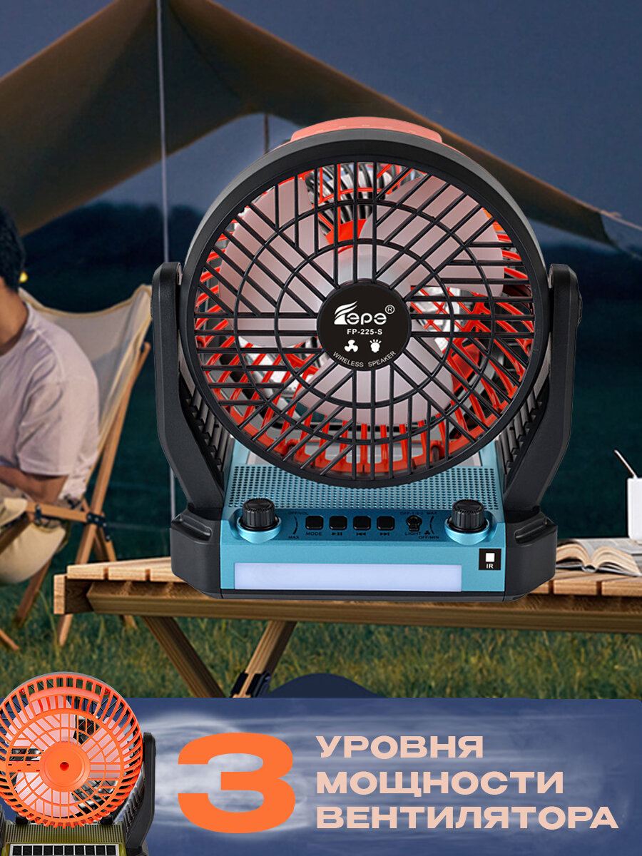 Отзывы на Радиоприемник с вентилятором, фонарем и солнечной батареей / Bluetooth медиаплеер для дачи и похода, черный