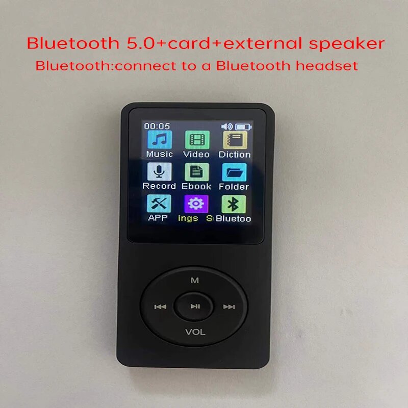 MP3-плеер 144GB с Bluetooth 5.2, встроенный динамик, FM-радио, диктофон, читалка электронных книг, мини-дизайн, для спорта и бега (с наушниками)