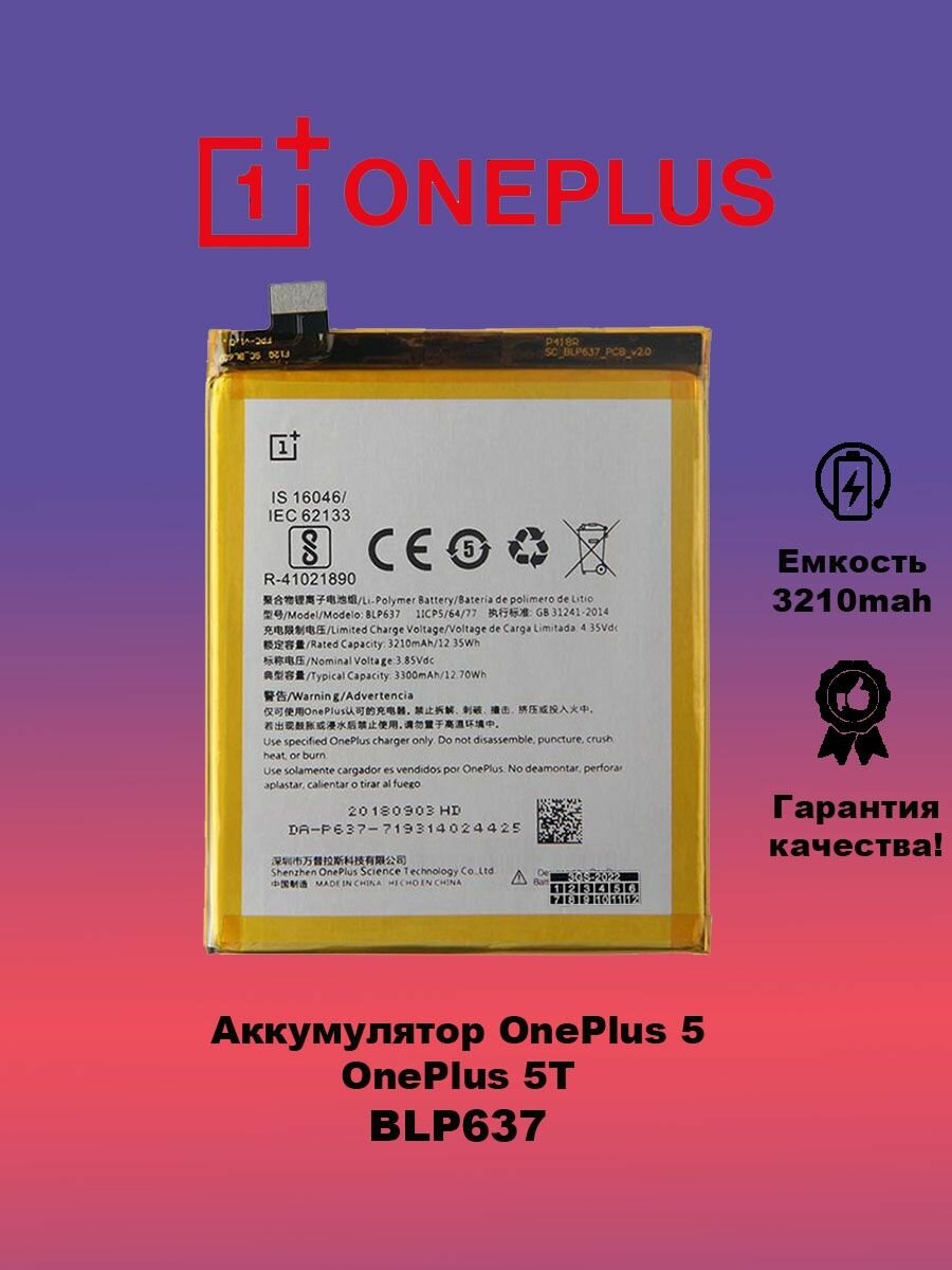 Аккумулятор OnePlus 5T BLP637 информация: