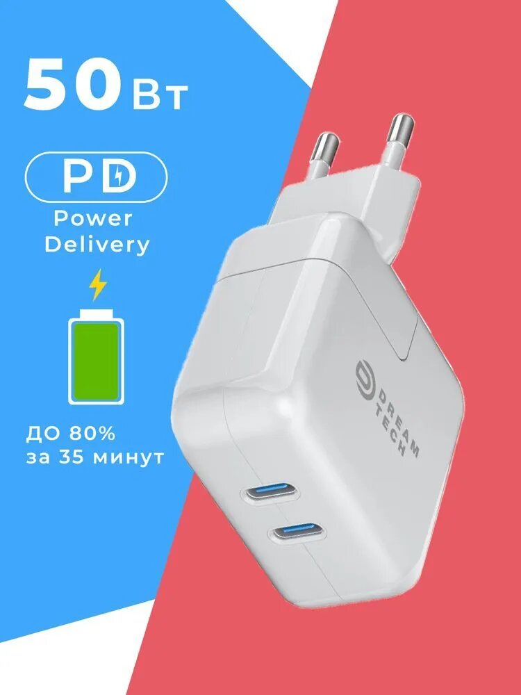 Отзывы на Быстрая зарядка 50W для смартфонов, планшетов, ноутбуков (iPhone, iPad, Airpods, Айфон, Samsung) Type-C, Сетевое зарядное устройство 50Вт блок питания
