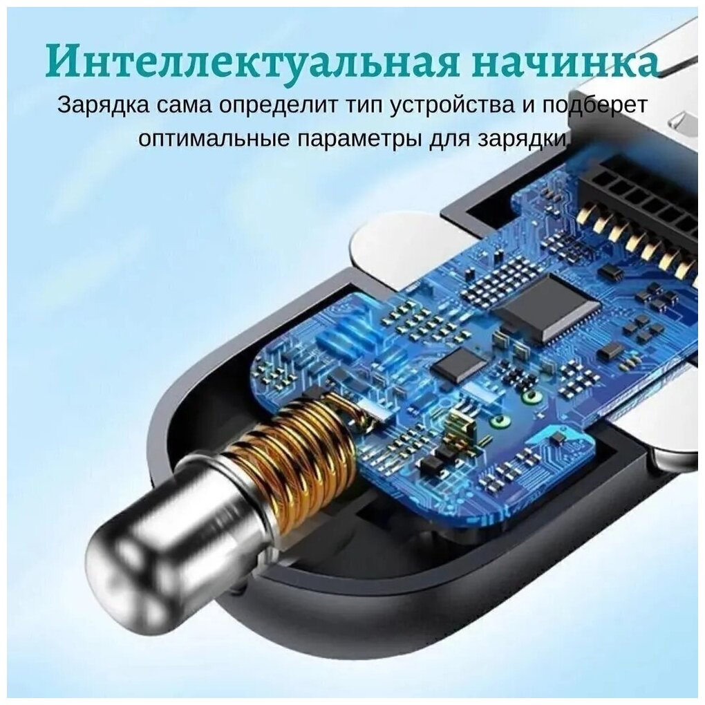 New-24 мощное зарядное устройство 12-32V 6,1А 36W (два USB: 3А и 3,1А) автомобильное для телефона/планшета.Адаптер питания универсальный в прикуриватель машины с подсветкой и быстрой зарядкой QC 3.0. информация: