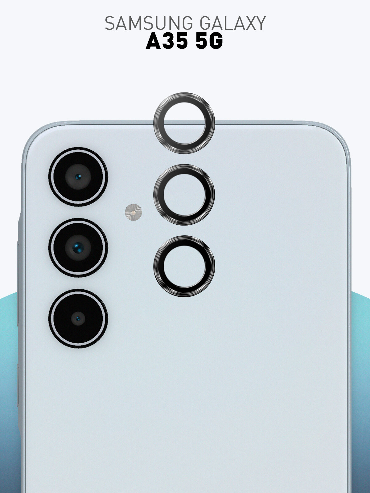 Отзывы на Защитные стёкла на камеры для Samsung Galaxy A35 (Самсунг Галакси А35), чёрная рамка, бренд Rosco, 1 комплект