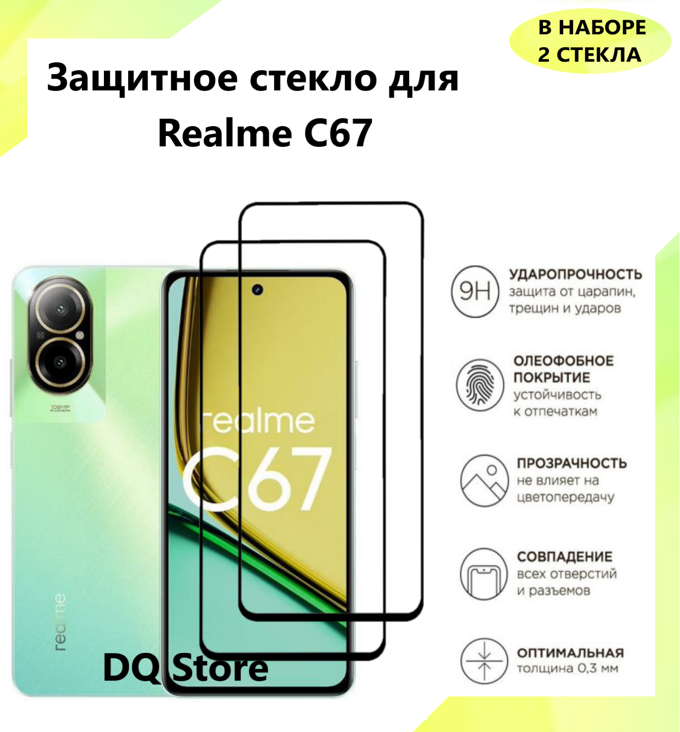 2 Защитных стекла на Realme C67 / Реалми С67 . Полноэкранные защитные стекла с олеофобным покрытием информация: