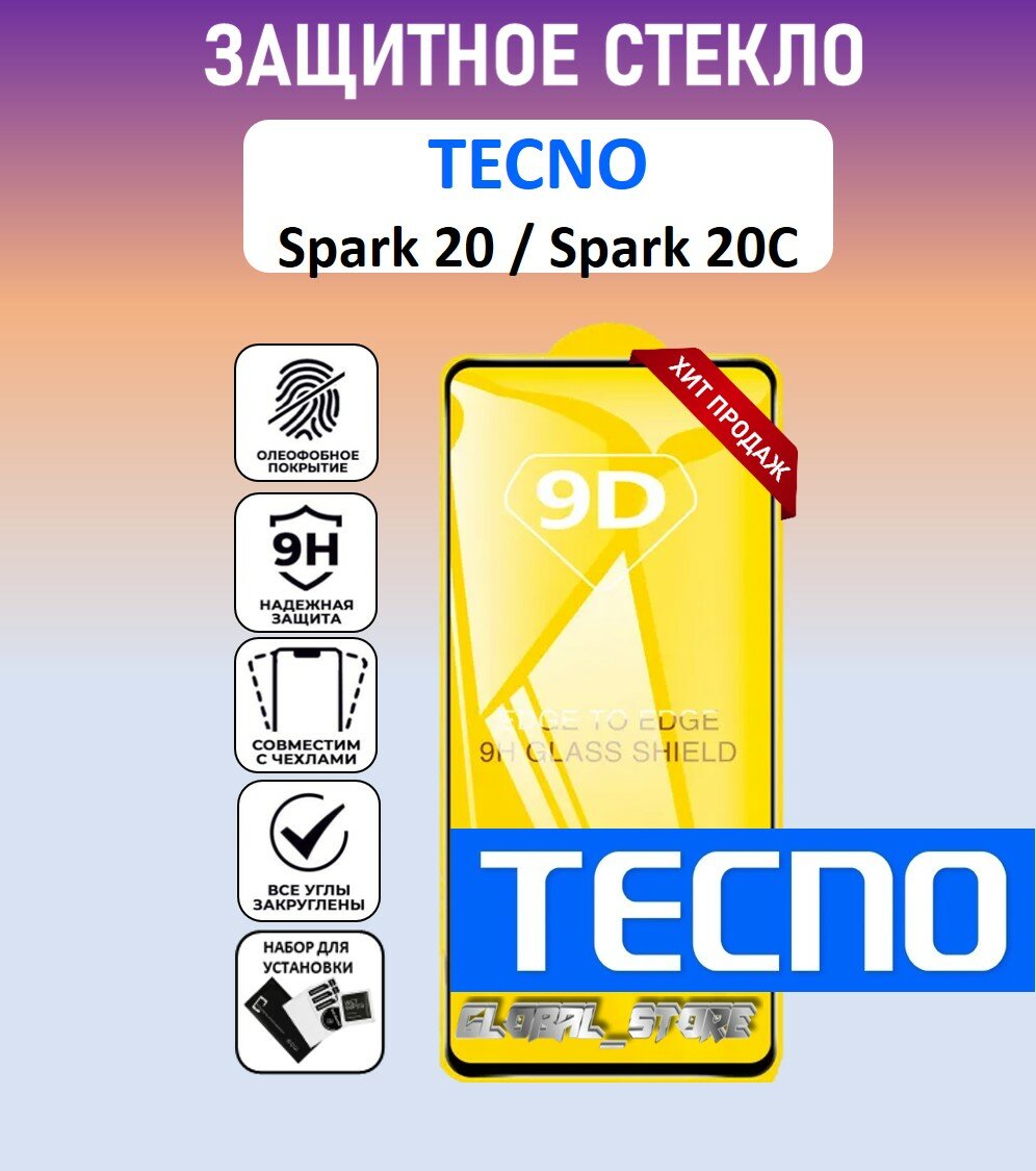 10 цен на Защитное полноэкранное стекло для Tecno Spark 20 / Spark 20C ( Техно Спарк 20Ц / Спарк 20 ) Full Glue