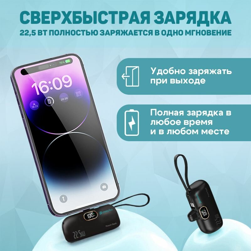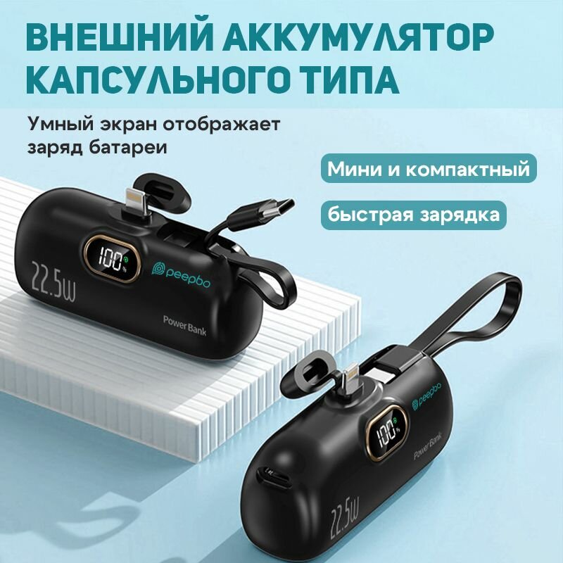 10 цен на Повербанк 5000 мАч /внешний аккумулятор,быстрая зарядка 22,5 Вт,черный