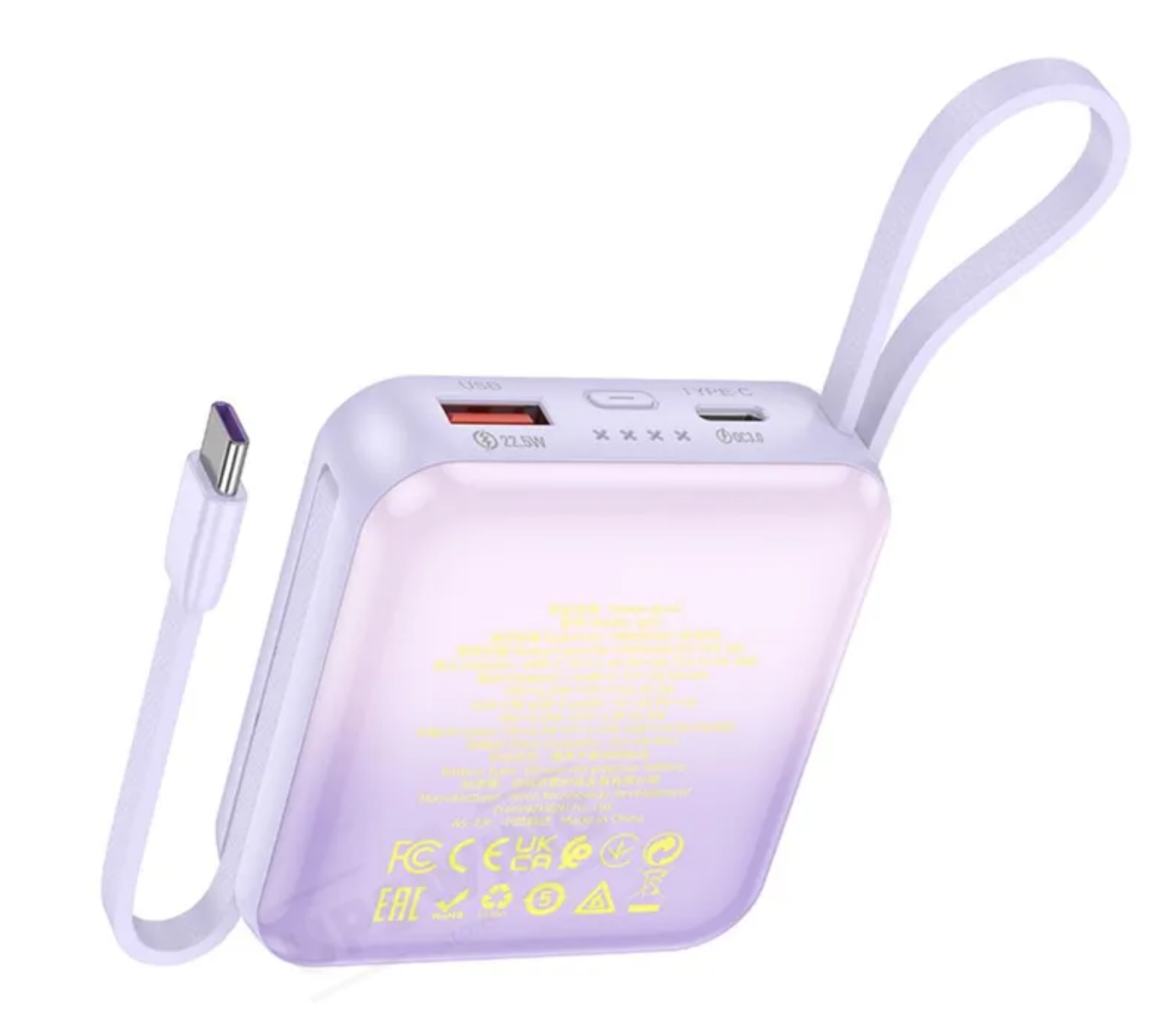 Повербанк (POWERBANK) HOCO Q23 10000 mAh 22.5W, быстрая зарядка, фиолетовый информация: