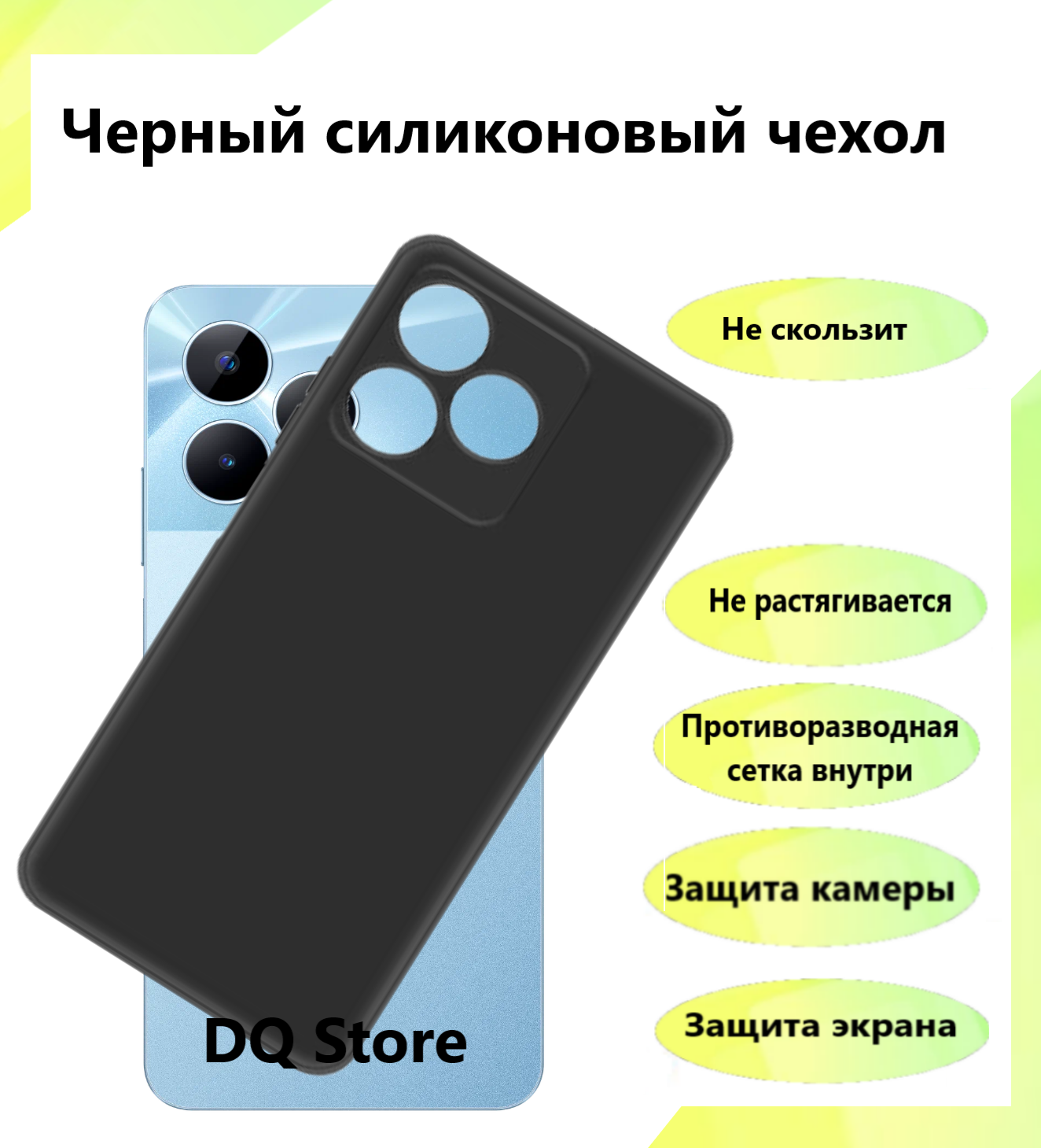 Силиконовый чехол для Realme Note 50 / Реалми Ноте 50. Черный матовый бампер с защитой камеры