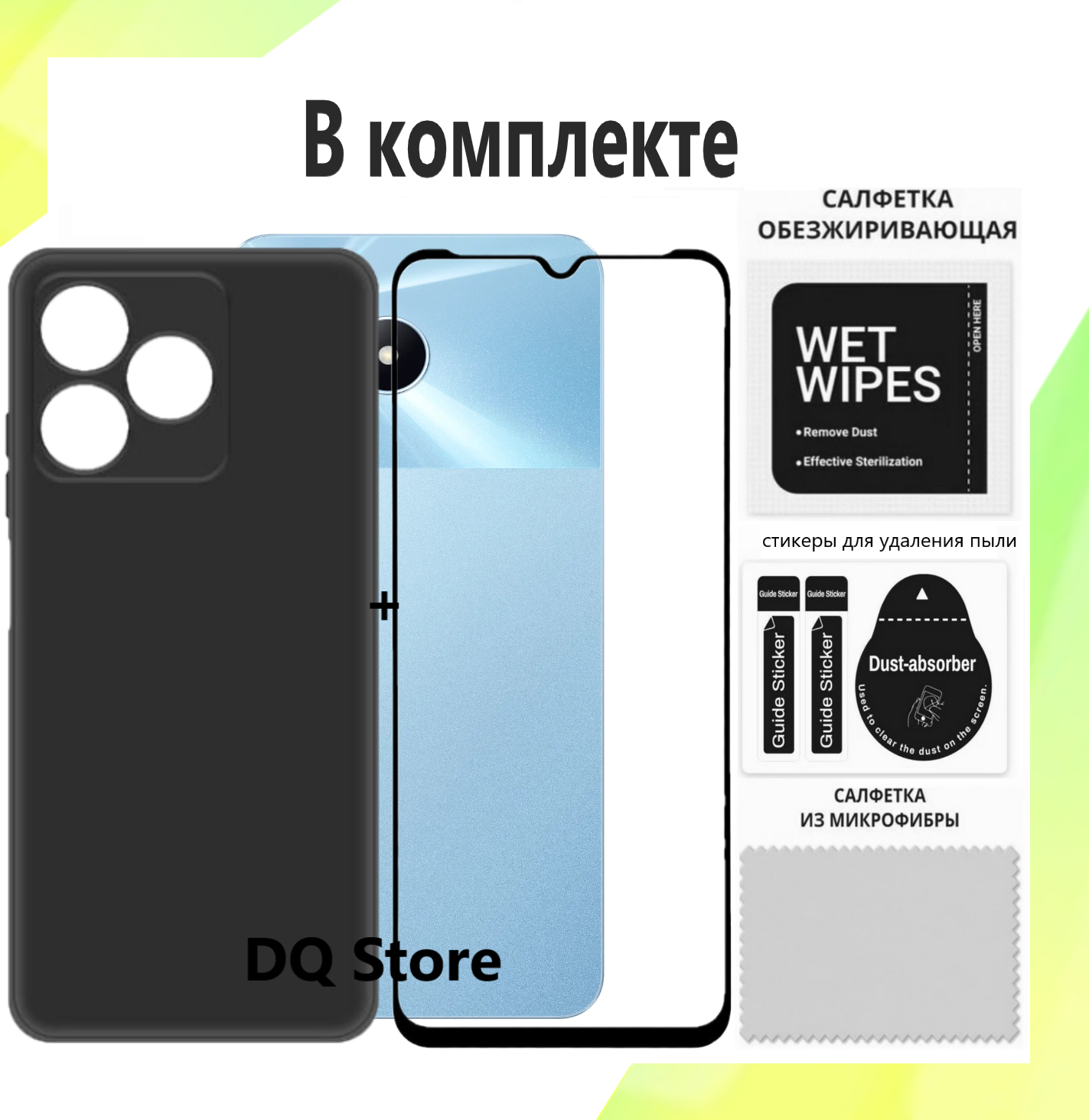 Комплект 2 в 1: Черный матовый cиликоновый чехол + защитное стекло для Realme Note 50 / Реалми Ноут 50 . Тонкий бампер с защитой камеры информация: