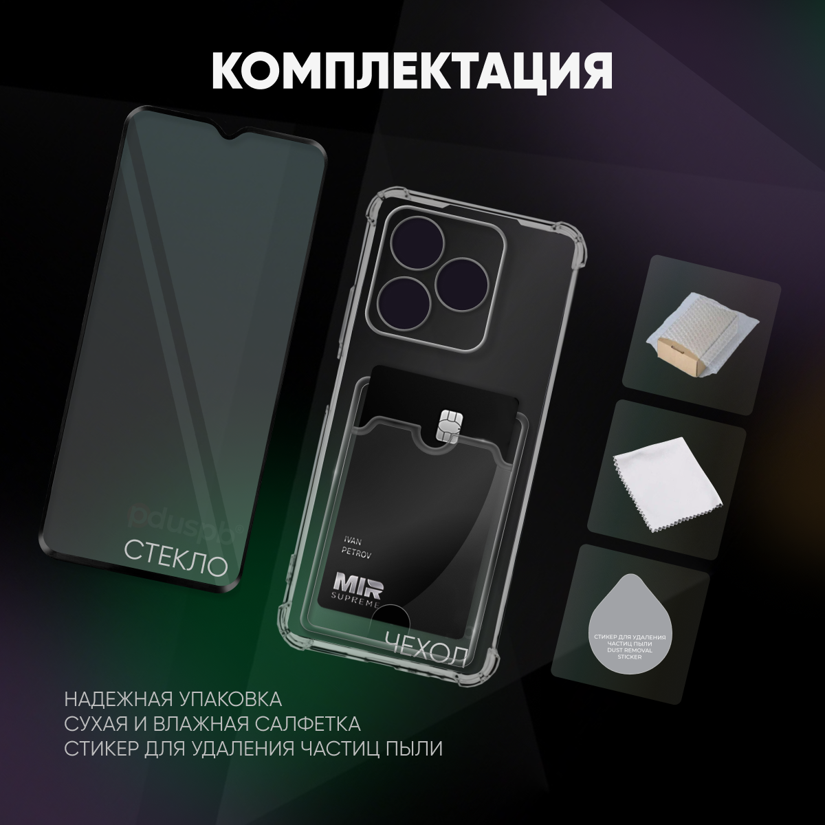 Отзывы на Комплект 2 в 1: Чехол №05 + стекло для Realme C51 / противоударный прозрачный клип-кейс с карманом для карт и защитой камеры и углов на Реалми Ц51