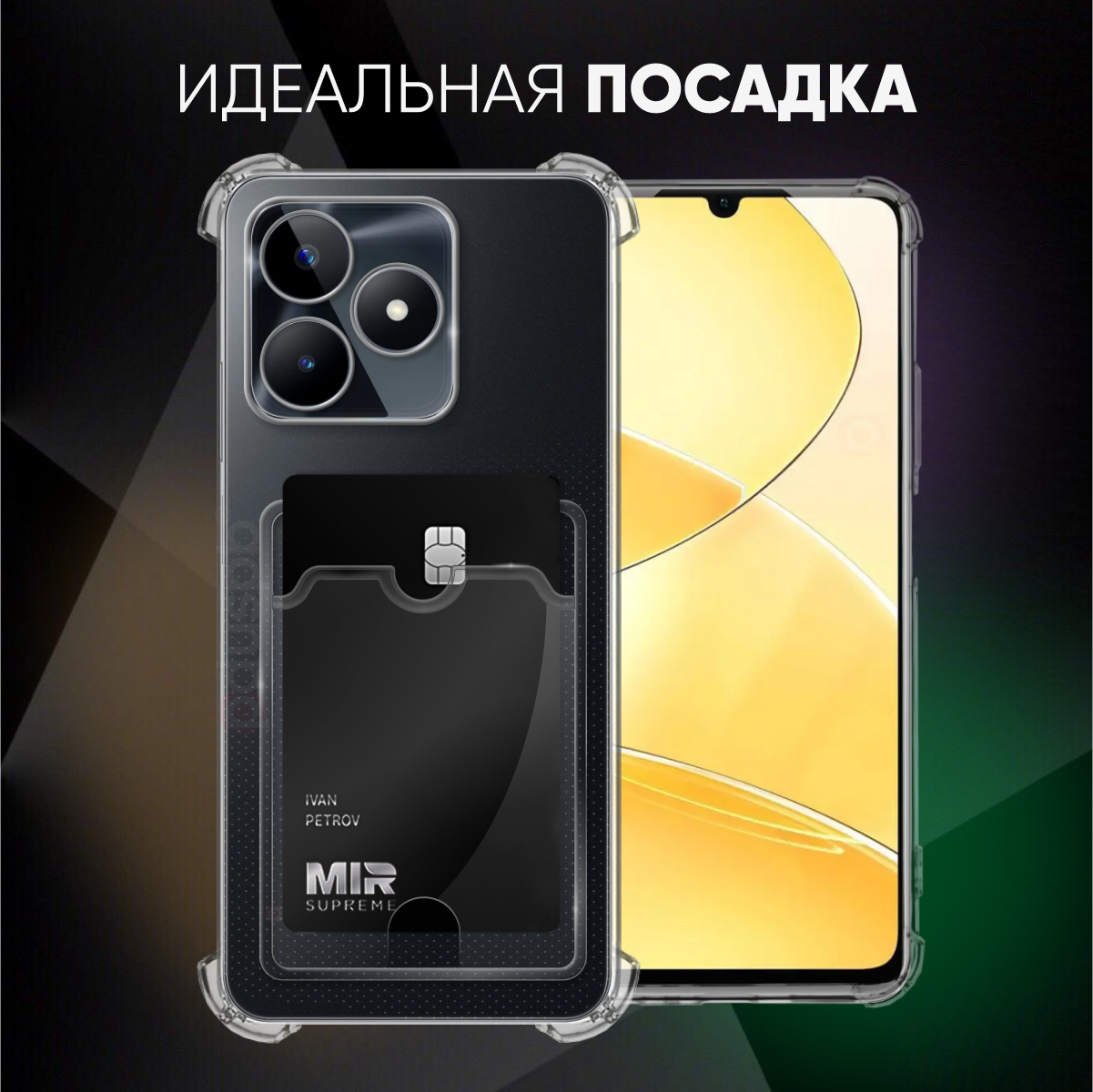 10 цен на Комплект 2 в 1: Чехол №05 + стекло для Realme C51 / противоударный прозрачный клип-кейс с карманом для карт и защитой камеры и углов на Реалми Ц51