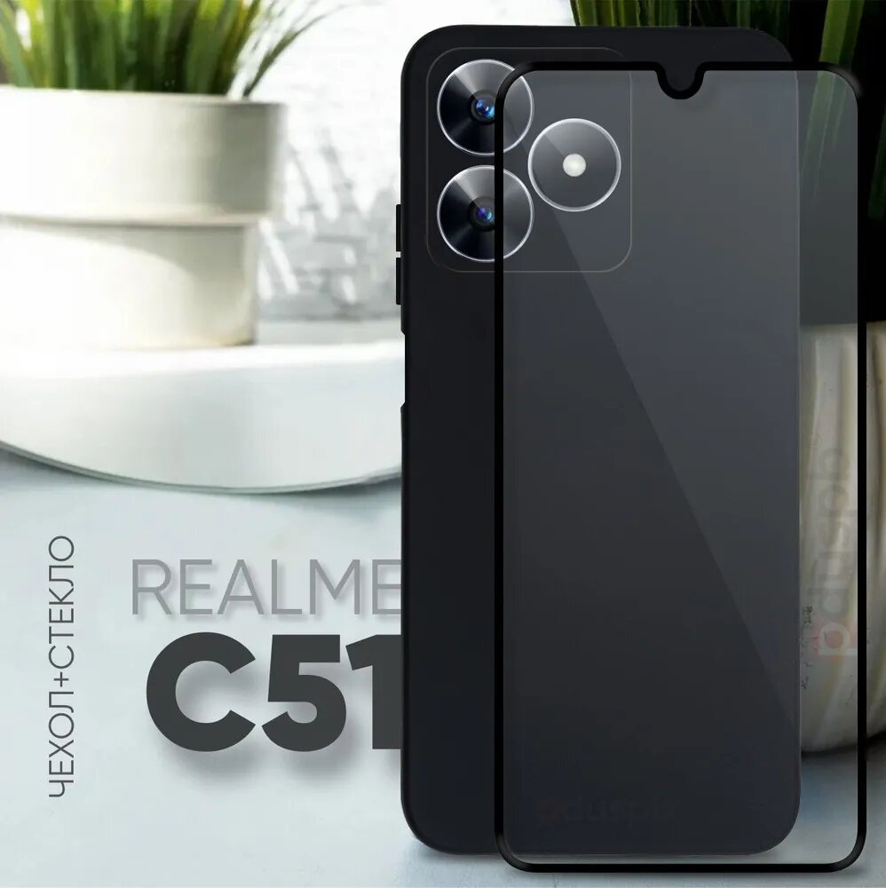 Комплект 2 в 1: Чехол + стекло для Realme C51 / Противоударный силиконовый матовый на Реалми Ц51 738 ₽
