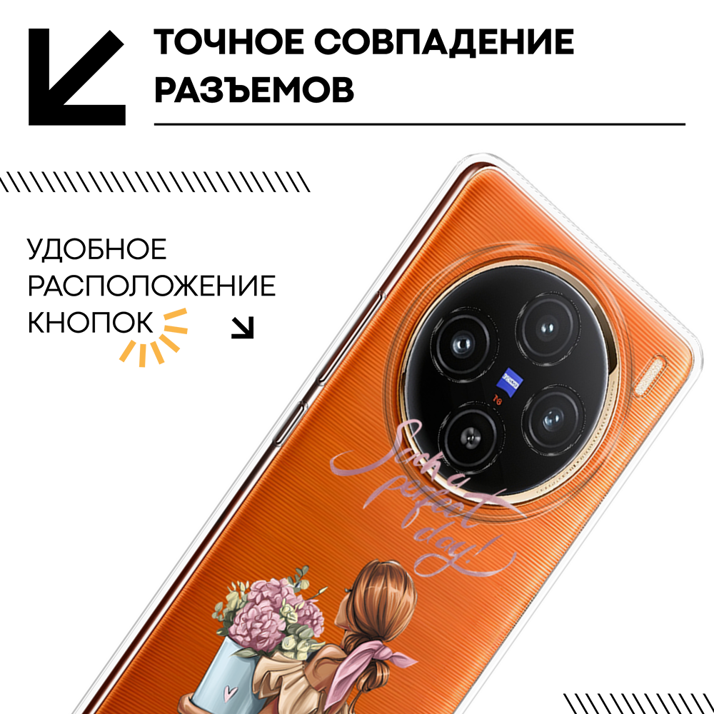 Отзывы на Чехол на Vivo X100 / Виво X100 с принтом Девушка с букетом, прозрачный