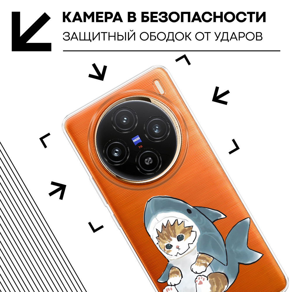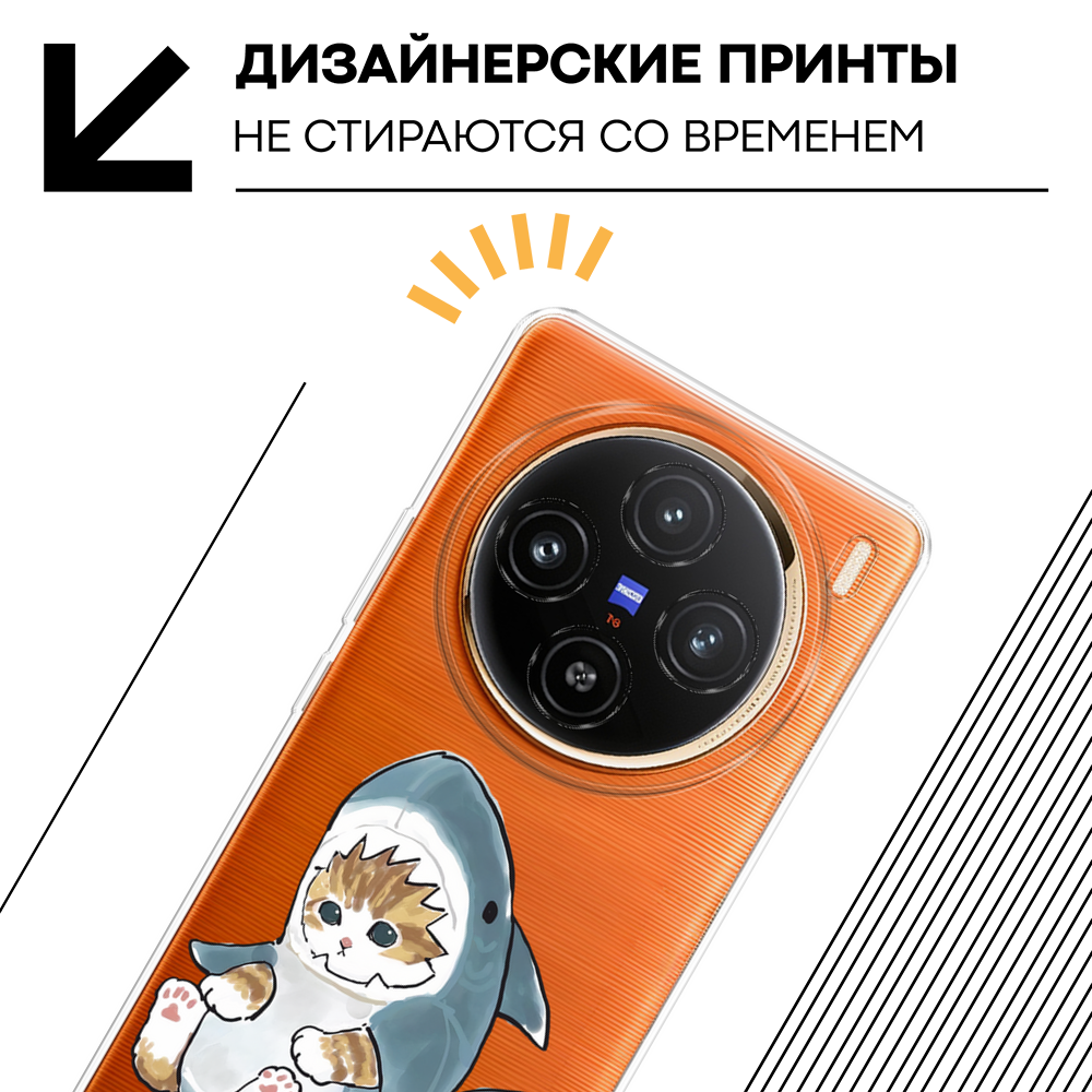 10 цен на Чехол на Vivo X100 / Виво X100 с принтом Кошачий плавник, прозрачный