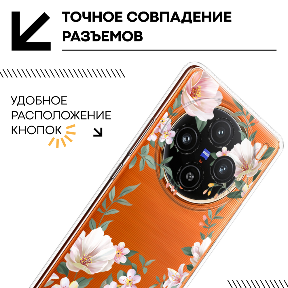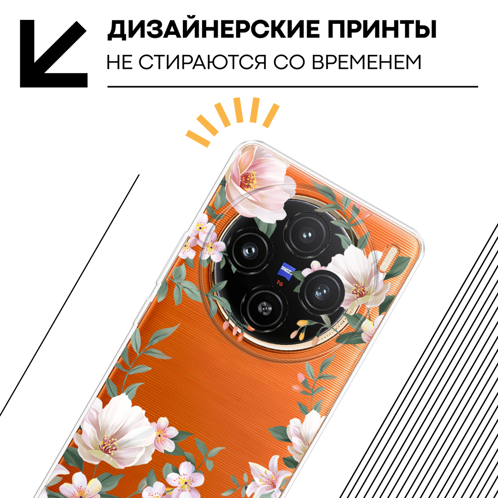 10 цен на Чехол на Vivo X100 / Виво X100 с принтом С цветами белыми, прозрачный
