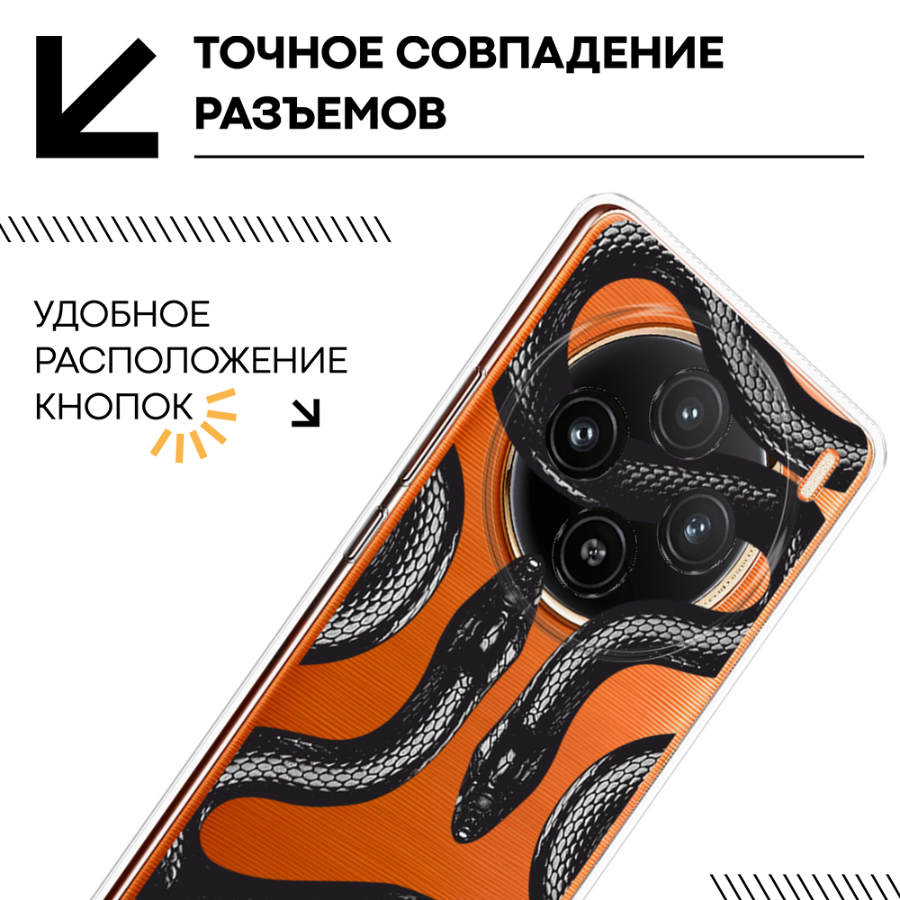 Чехол на Vivo X100 / Виво X100 с принтом Черные змеи, прозрачный информация: