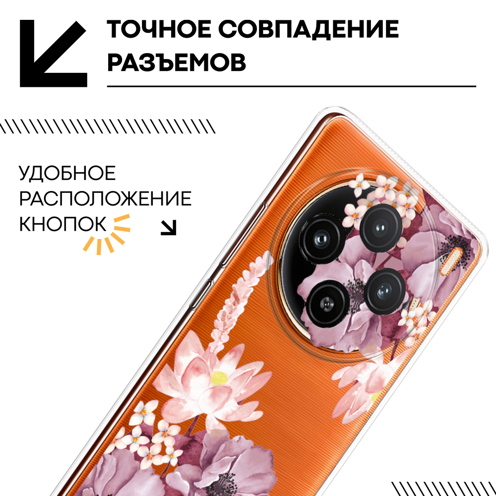 Чехол на Vivo X100 / Виво X100 с принтом Розовые анемоны, прозрачный информация: