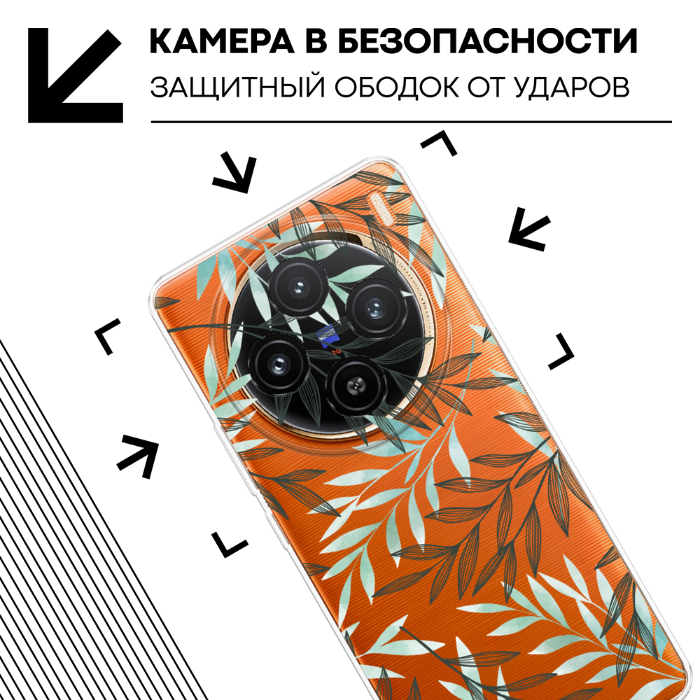 Чехол на Vivo X100 / Виво X100 с принтом Тонкие листья, прозрачный информация: