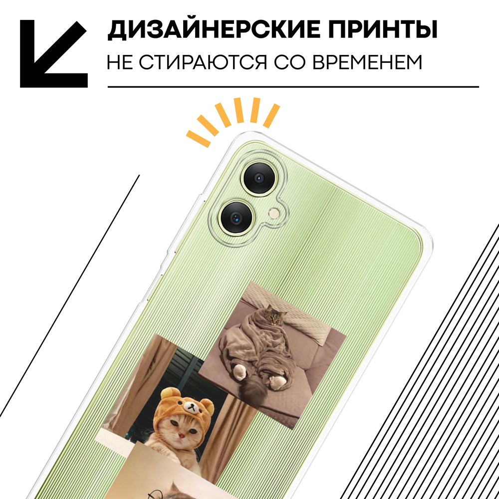 10 цен на Чехол на Samsung Galaxy A06 / Самсунг Галакси А06 с принтом Домашние коты, прозрачный