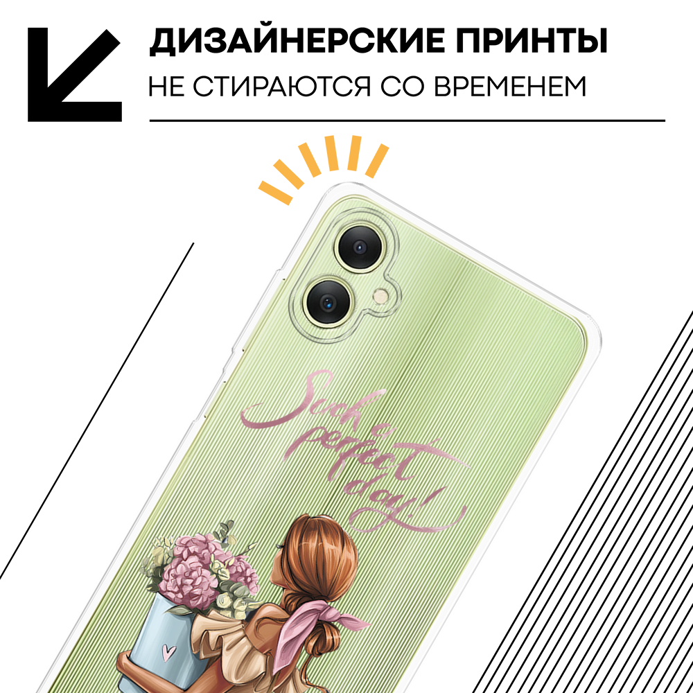10 цен на Чехол на Samsung Galaxy A06 / Самсунг Галакси А06 с принтом Девушка с букетом, прозрачный