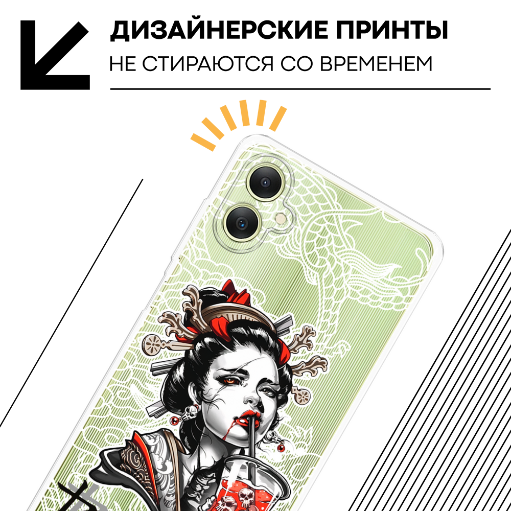 10 цен на Чехол на Samsung Galaxy A06 / Самсунг Галакси А06 с принтом Гейша с напитком, прозрачный